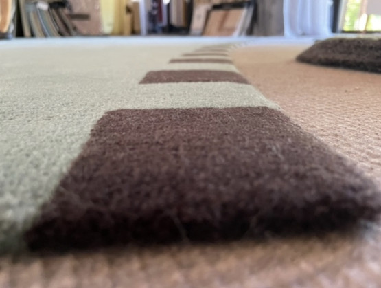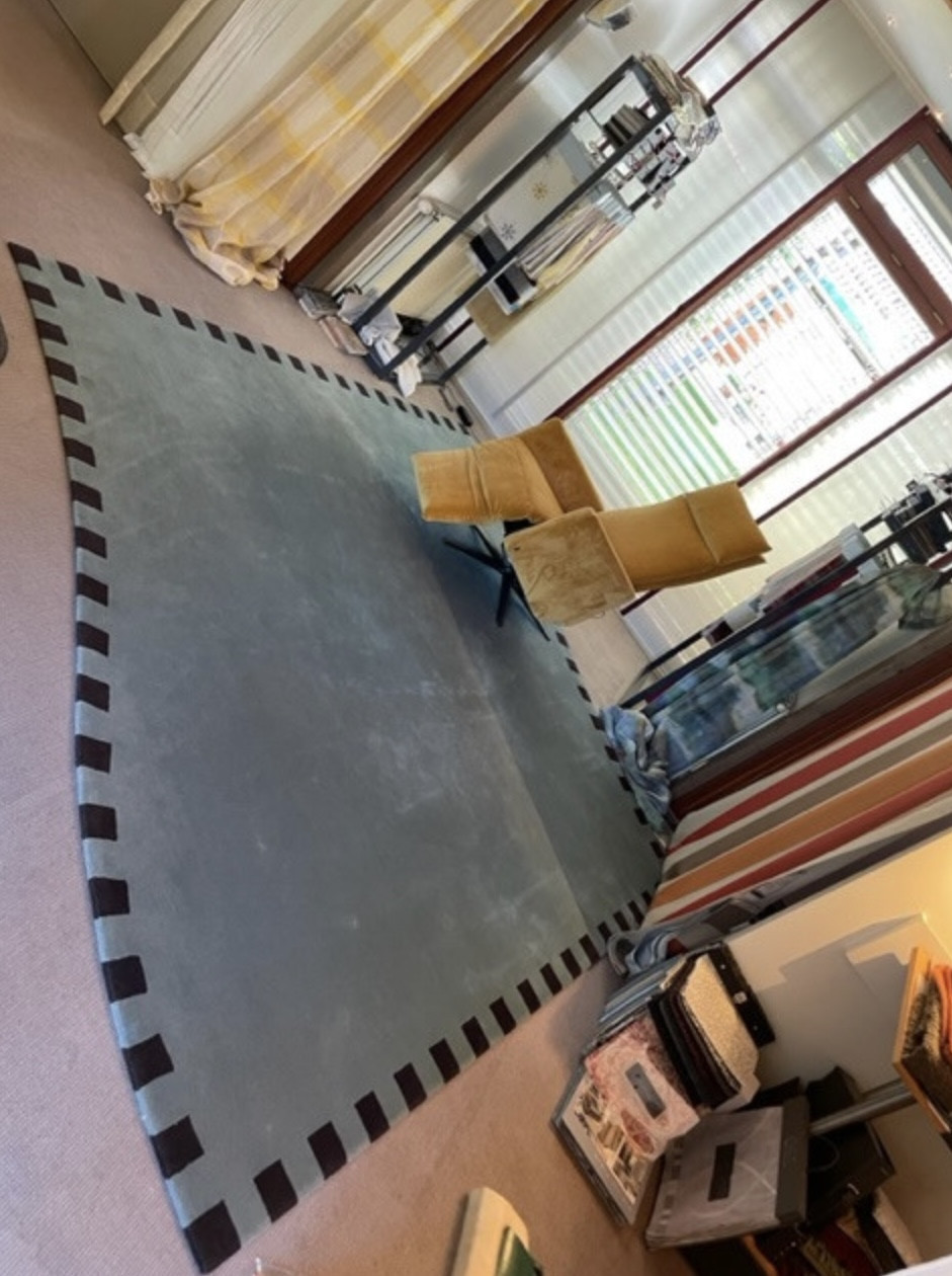 Dieser Handkunstteppich in Sonderform / Hersteller: JAB / Design: Ordelheide Wohnideen / besteht aus 100% Neuseelandschurwolle. Oberfläche: Velours