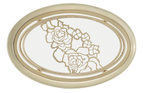 Mit drei Luxusstufen, die in einer kunstvollen Optik gipfeln, setzt WILD FLOWER in jedem Raum ein Statement. Er ist auf jeder Ebene wunderschön und verfügt über einen ovalen Metallrahmen, der eine Tischplatte aus gehärtetem Glas sowie ein zweites Regal darunter umschließt. Schauen Sie durch und bewundern Sie die Schönheit der dritten Ebene, auf der stolz eine in ein geometrisches Blumenmuster geschnittene Metalltrage zur Schau gestellt wird. Anmutige Cabriole-Beine unterstützen das offene Design und werden durch ein Oracle-Finish hervorgehoben. Stellen Sie diesen schönen Tisch neben Ihr Lieblingssofa oder Ihren Lieblingsstuhl und genießen Sie seine vielschichtige Schönheit.