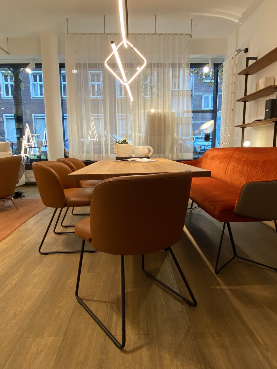 Das Design des ersten GAIA Stuhl Modells hat die italienische Designerin Monica Armani gekonnt in die LINE Edition übertragen. Unverkennbarer Sitzkomfort durch die raffinierte Polsterung der großzügigen Sitzfläche und der geschlossenen halbrunden Rückenlehne mit elegantem Keder. Sitzfläche und Keder sind farblich identisch und zeigen ein kontrastreiches oder harmonisches Spiel. Eine spannende Wirkung erzielt ein Materialmix für Rücken und Sitzfläche. Die GAIA LINE Familie – exquisite Möbel in drei Sitzhöhen für Zuhause oder das ausdrucksstarke Objekt. Für das KFF Partnerunternehmen ASCO hat die italienische Designerin ergänzend drei GAIA Tisch Kompositionen designt. Die Tischsäulen nehmen den Bezugsstoff der GAIA Stühle wieder auf und bilden somit ein harmonisches und einzigartiges Ensemble.