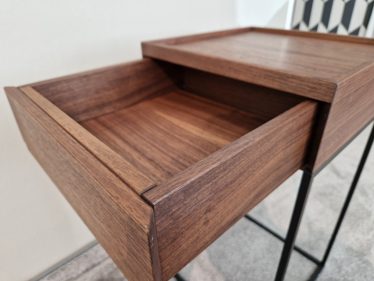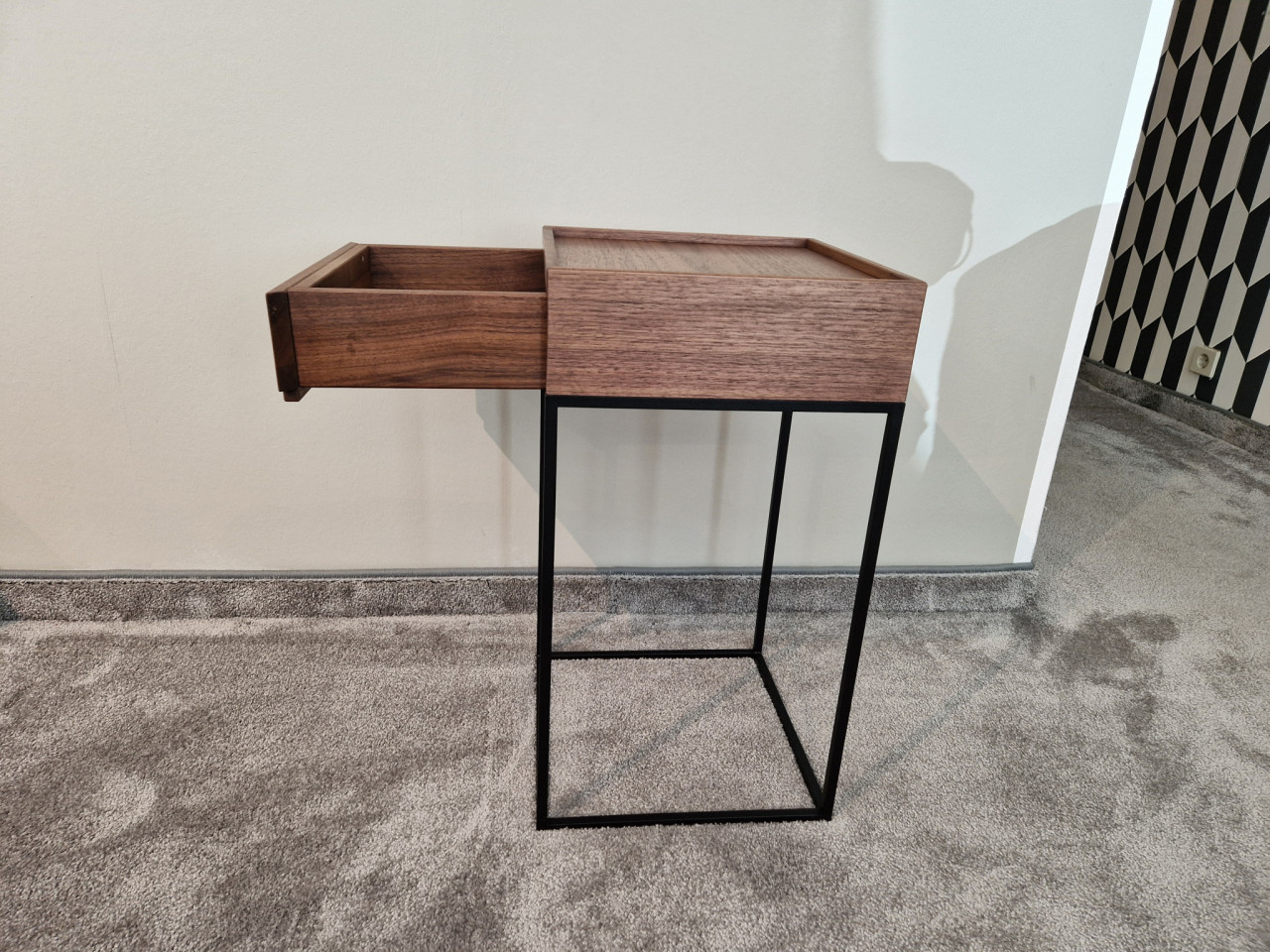 Nussbaum teilmassiv geölt, Gestell: pulverbeschichtet schwarz