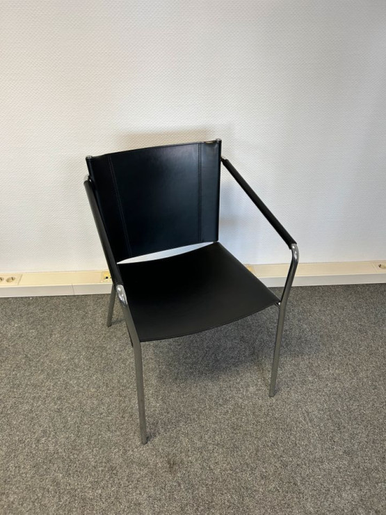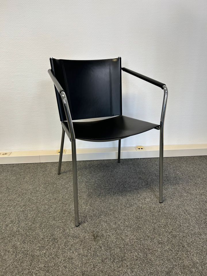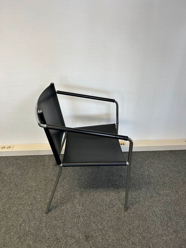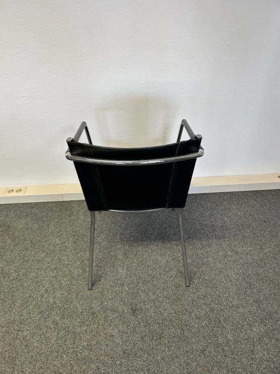 Tonon Besucherstuhl Leder schwarz Gestell Chrom