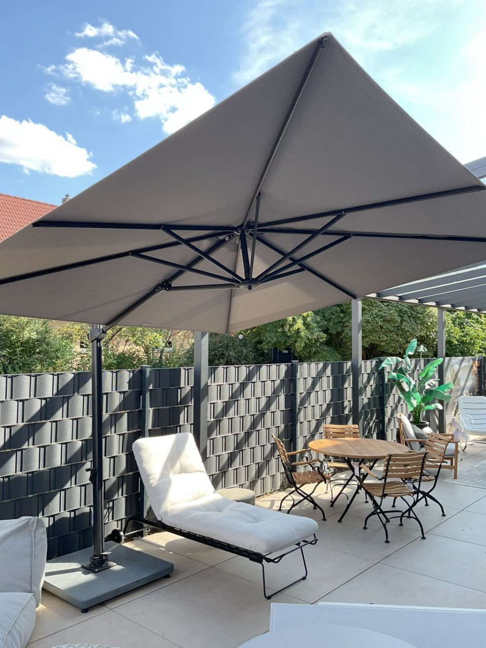 Freiarm Schirm von Weishäupl (8894)+ Bodenplatte (8895)