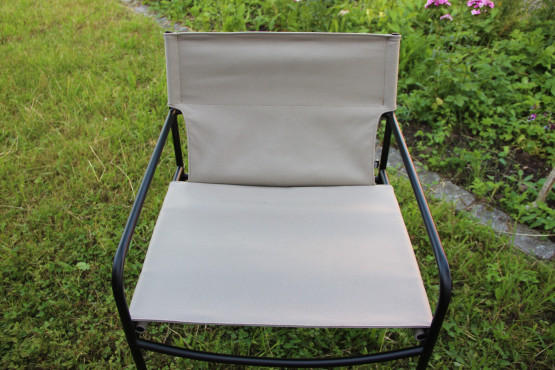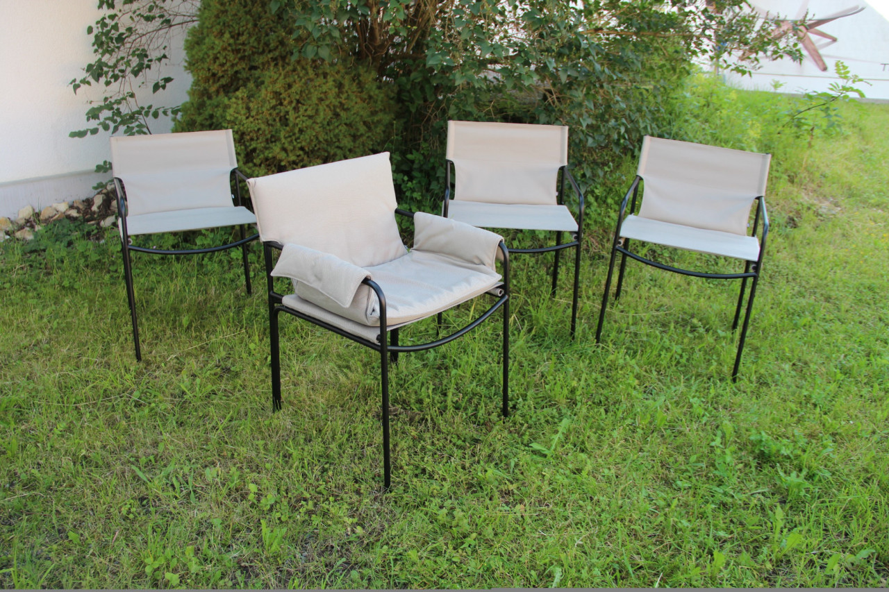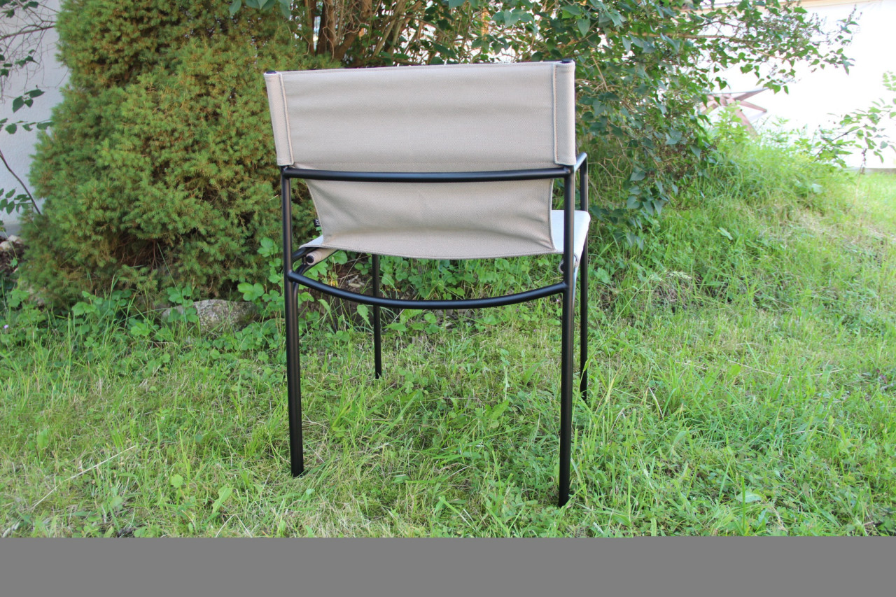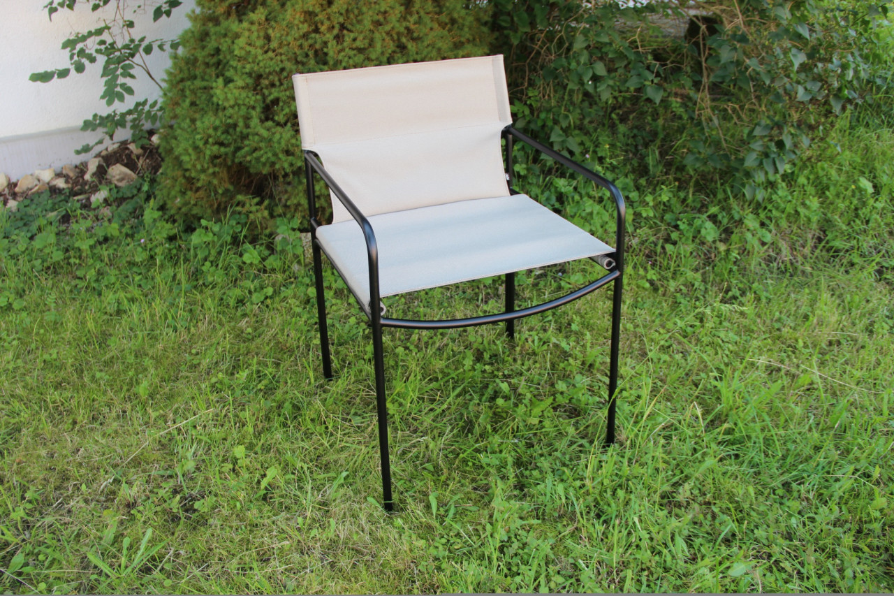 Die Form des gesamten rostfreien Stahlgestells verläuft bewusst in Geraden und Kurven zu einer einmaligen Symbiose. Die waschbare, UV-beständige und wetterfeste Stoffbespannung im Rücken und Sitzbereich bietet höchsten Komfort.