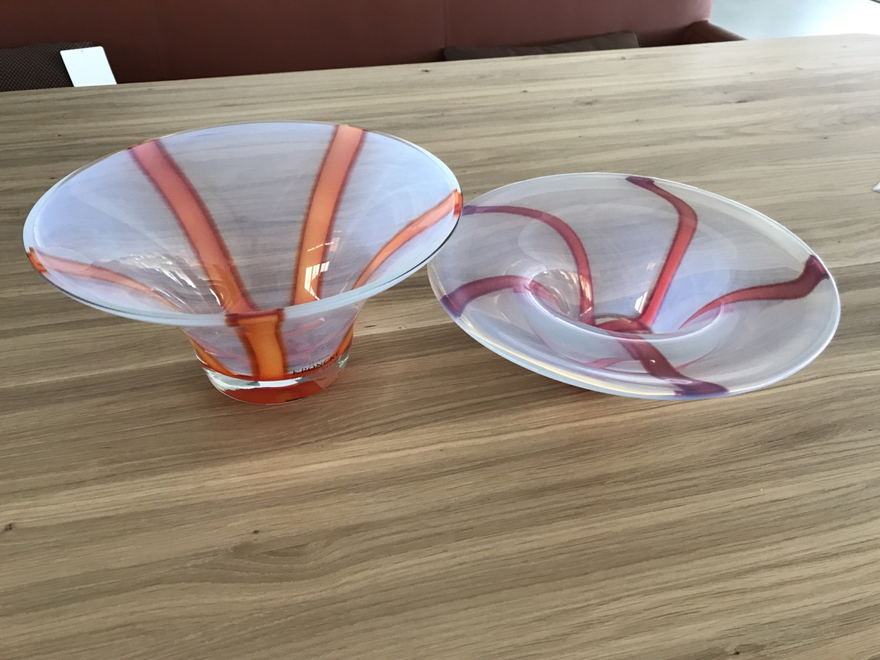 Glas weiß transparent mit Muster orange