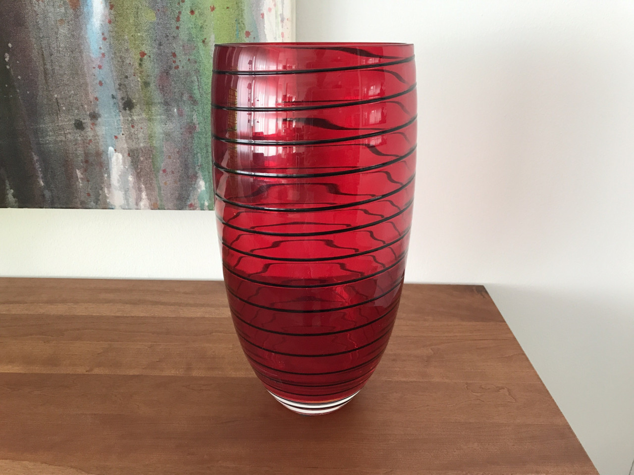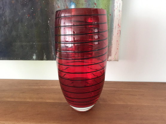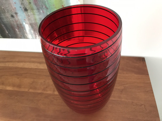 Glas rot mit schwarzen Linien
