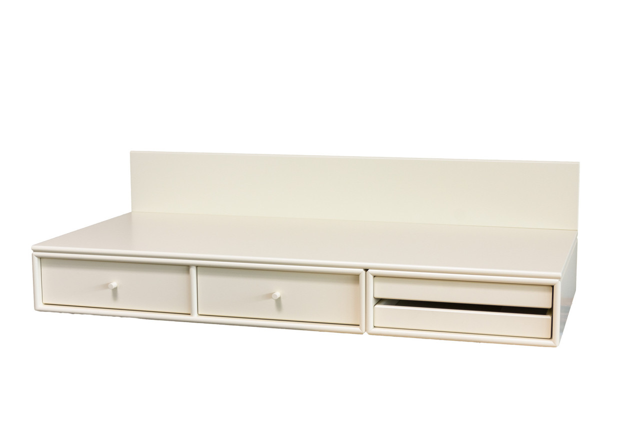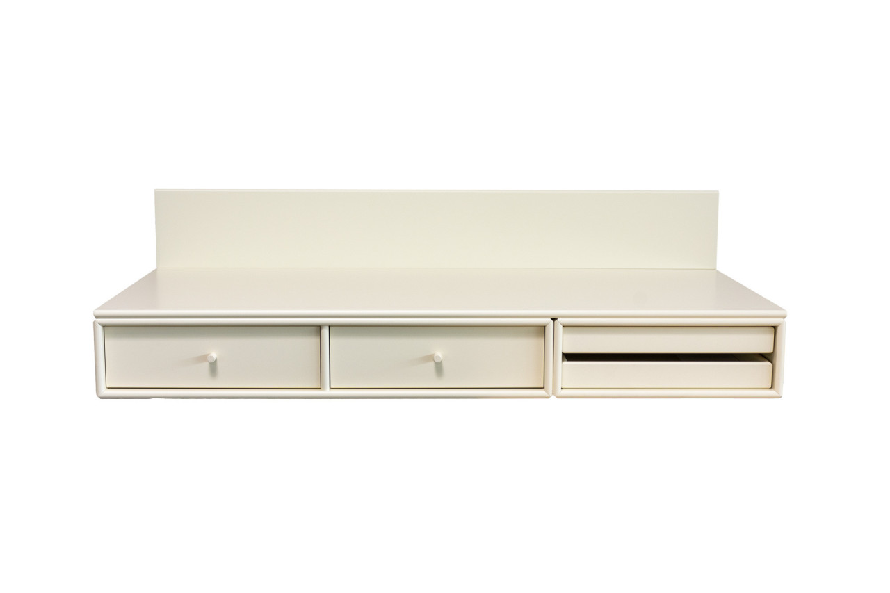 Das angebotene Montana Möbel kann wie gezeigt als kleiner, platzsparender Schreibtisch im Home Office zum Einsatz kommen, genauso wie im Kinderzimmer oder als praktische Ablage im Flur, wie auch als Schmink Anrichte im Schlafzimmer. Ebenso können alle Montana Elemente separat genutzt werden oder mit anderen zusätzlichen Modulen kombiniert werden.