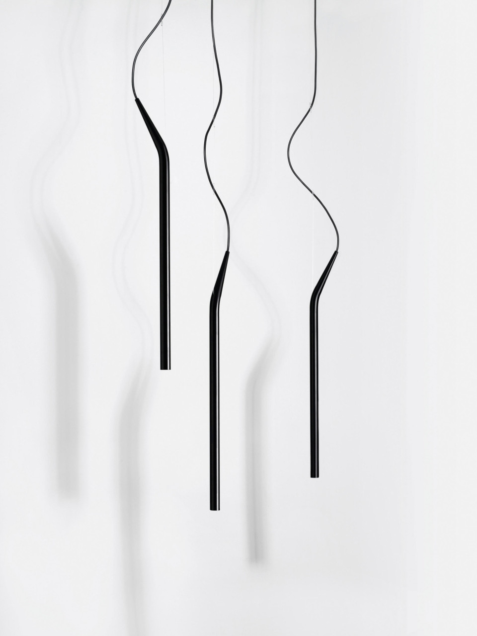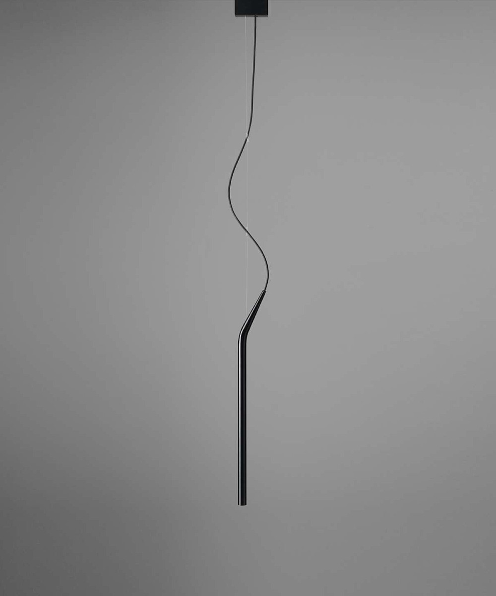 Aluminium Pendelleuchte zur punktuellen-Beleuchtung mit LED-Lichtquellen. Eine elementar einfache Regulierung auf dem Kabel garantiert, dass der Beleuchtungskörper richtig gerade hängt.