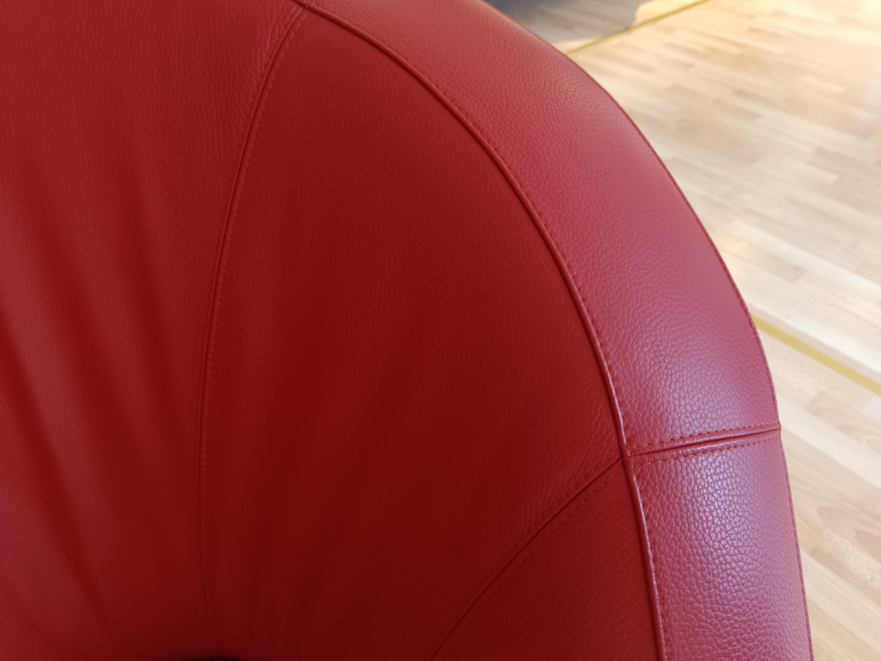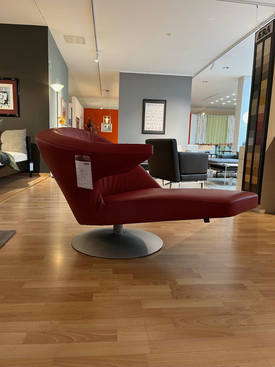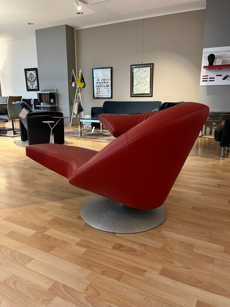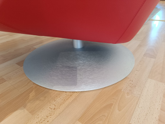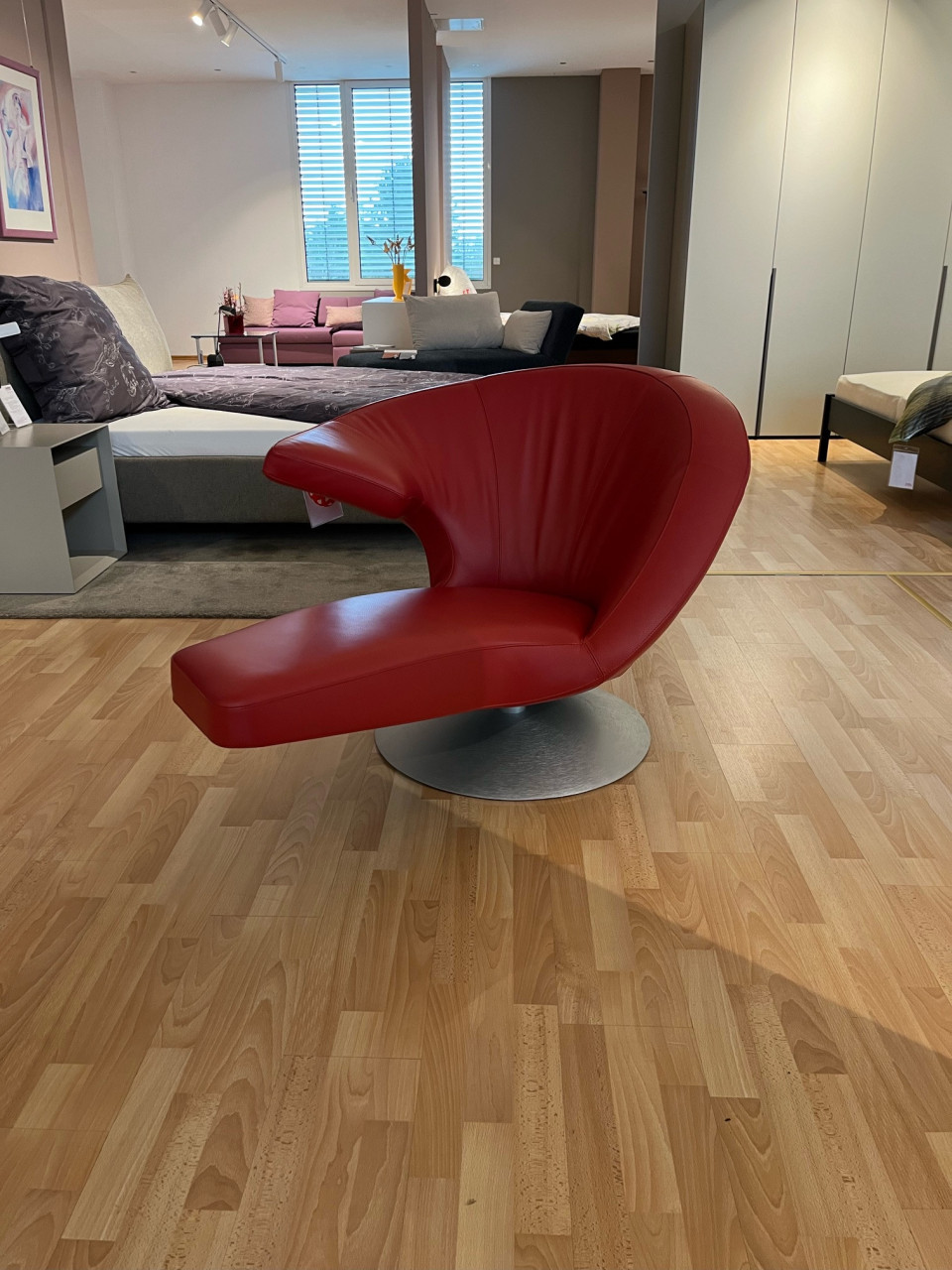 Drehsessel Arm links, Leder Senso Ferrari rot 1077, Tellerfuß Aluminium gebürstet.