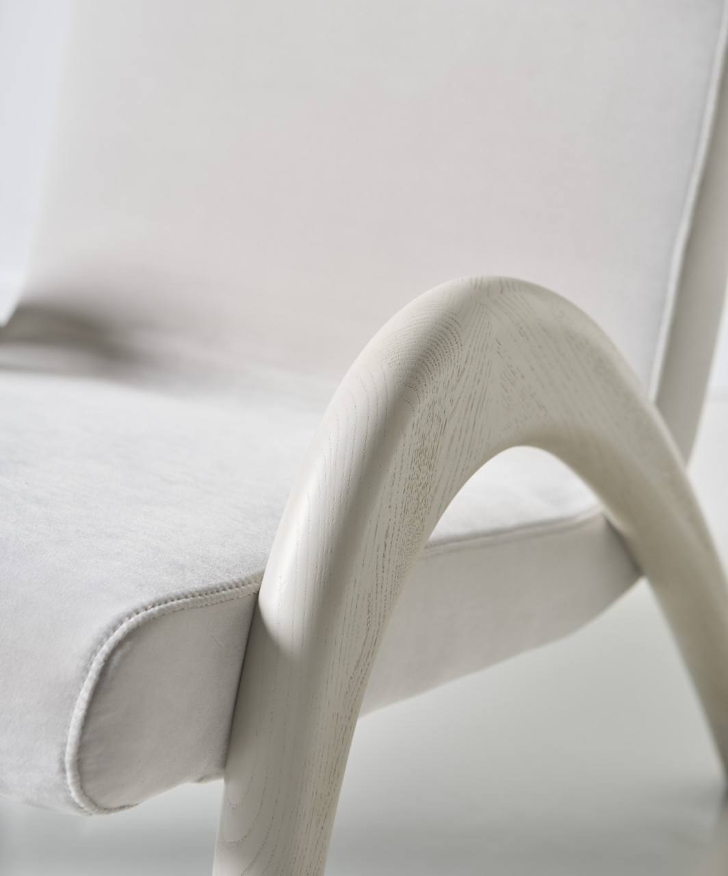 Dieses Kelly Hoppen Stück ist eine moderne Interpretation des klassischen Sessels, der die natürliche Schönheit von Eschenholz mit dem sanften Glanz von taupefarbenem Samt vereint. Eine Feier von Kurven, Textur und Fließfähigkeit, CoCo's Schlichtheit ist anspruchsvoll und erhebend. Rahmen in Fossil-Finish. Gepolsterter Sessel. Premium-Möbel für exklusive Wohnräume.