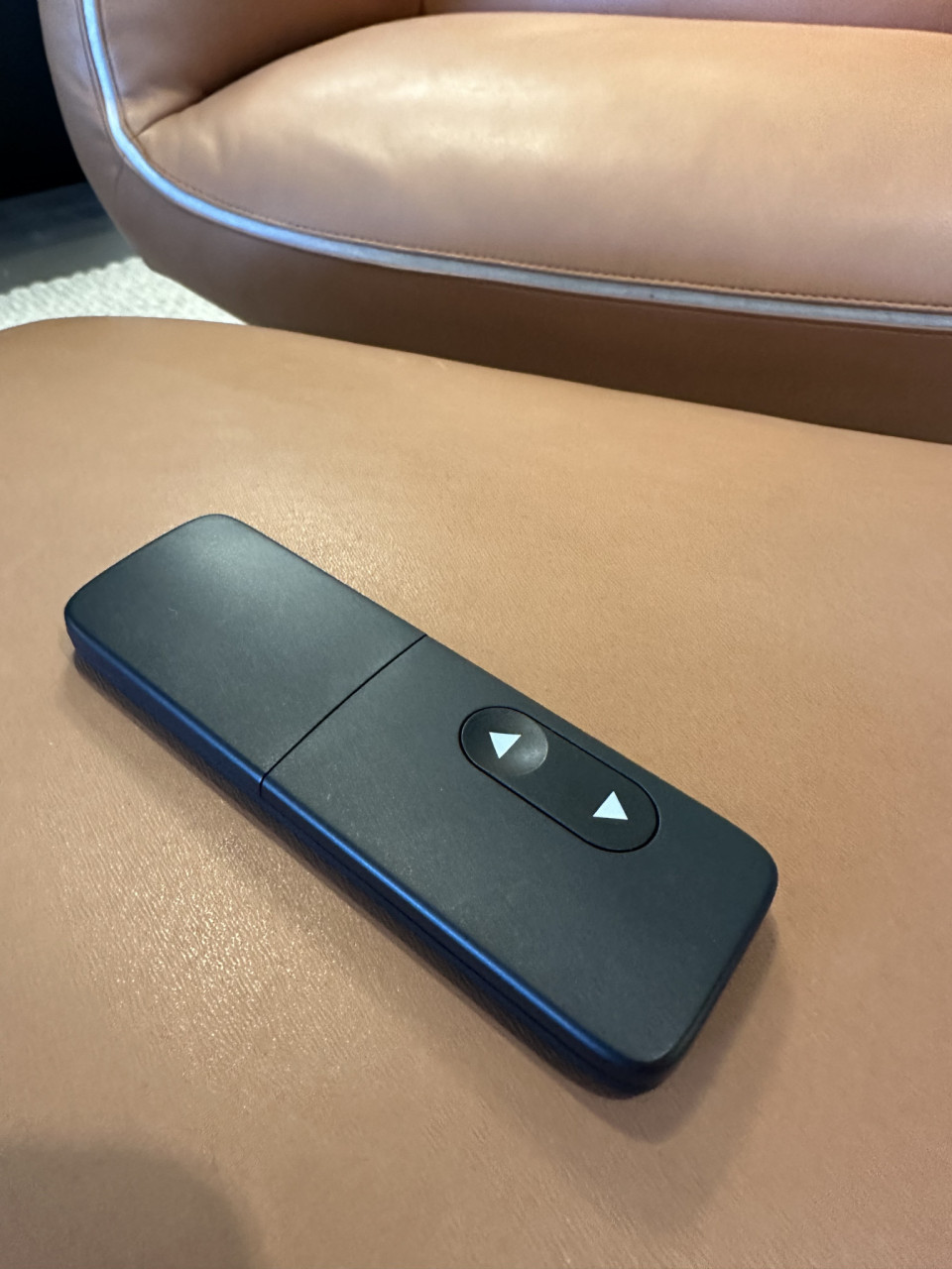 Die Bedienung erfolgt über eine Funkfernbedienung und der Sessel hat Akku-Betrieb.