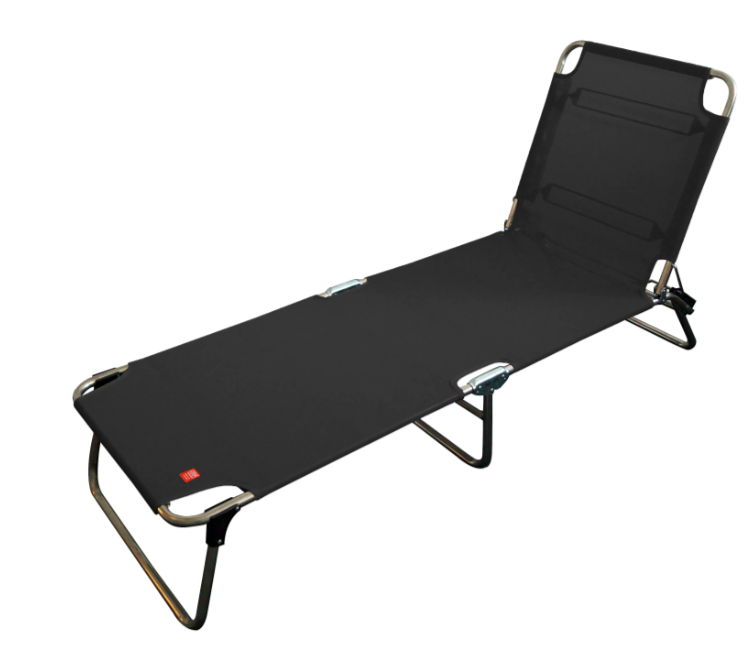 Die Dreibeinliege ist zusammenklappbar und tragbar, mit verstellbarer Rückenlehne.