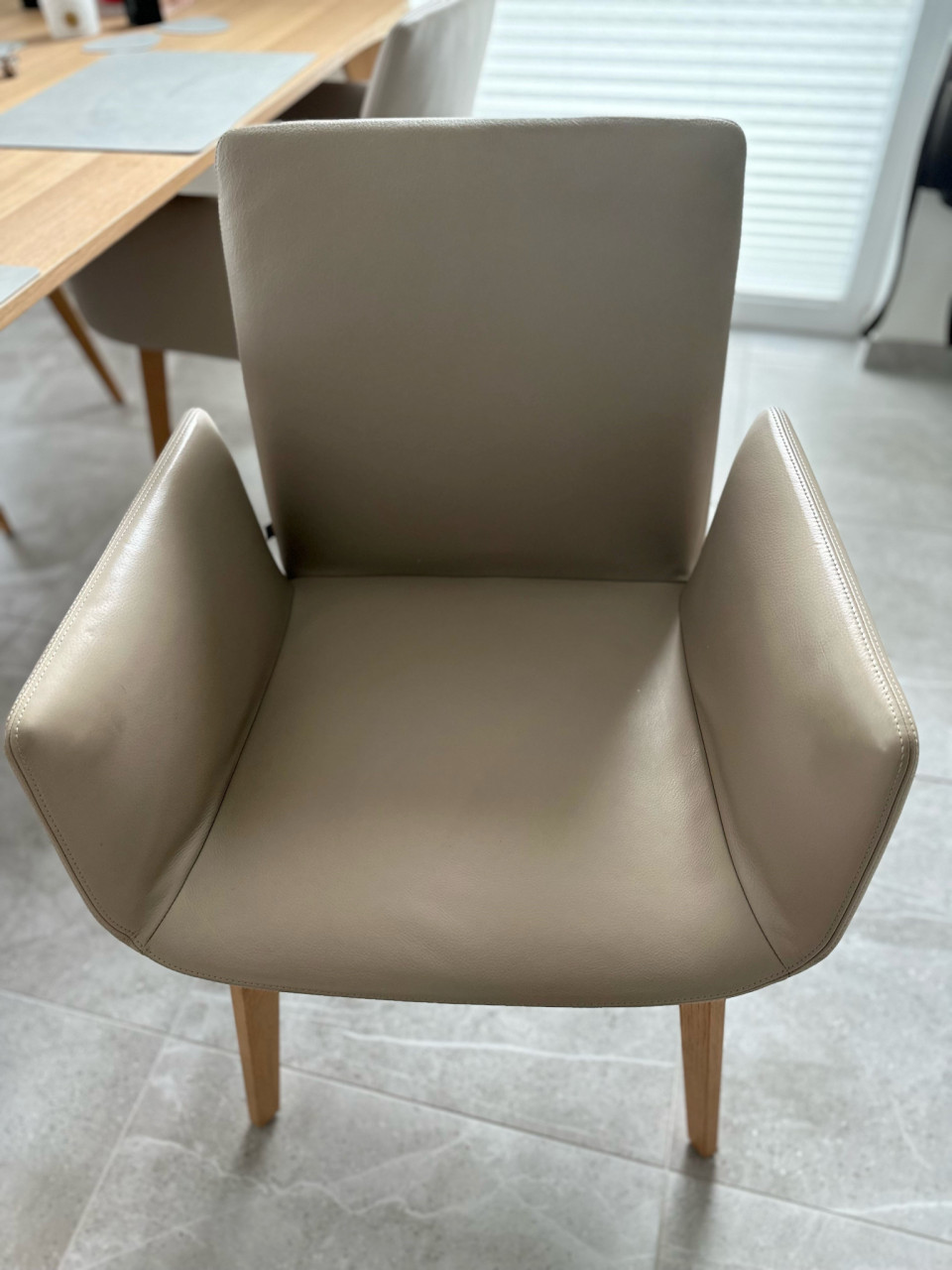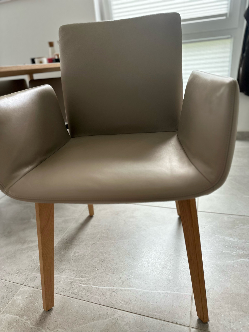 Die Stühle sind etwa 4 Jahre alt, befinden sich aber in einem sehr guten fast neuwertigem Zustand. Verkauf im Kundenauftrag. Können in unserem Showroom angeschaut werden.