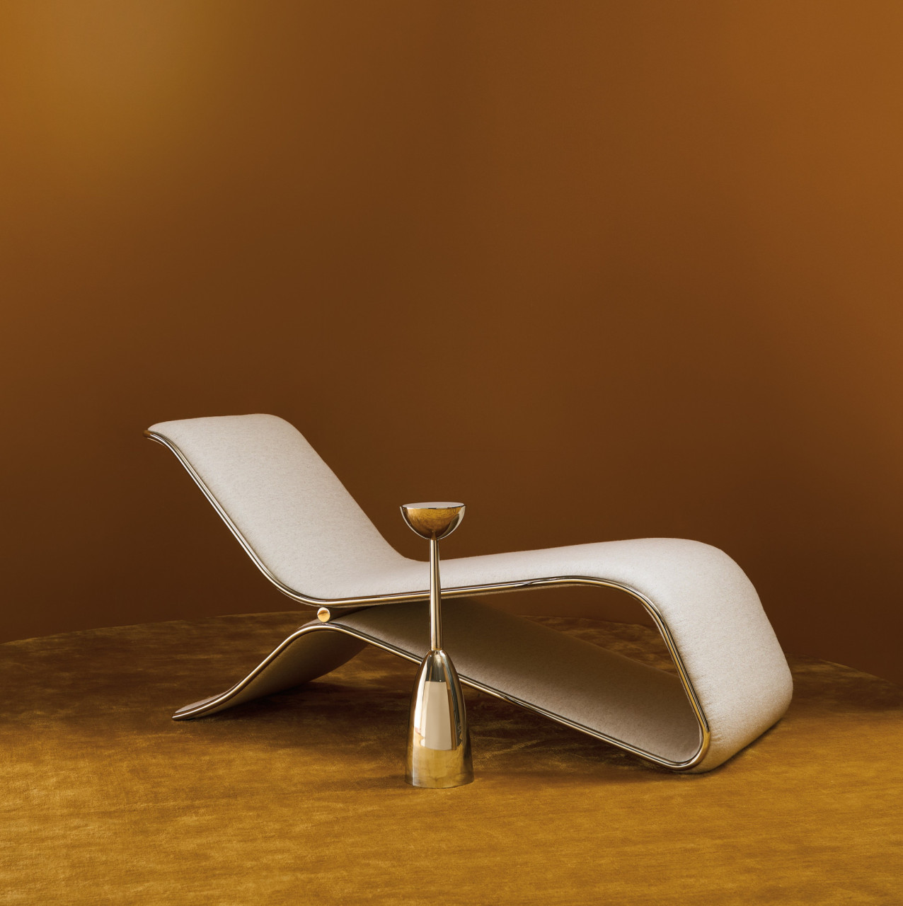Inspiriert von der kontinuierlichen Form und der einfachen Eleganz einer Büroklammer verbindet dieser skulpturale Sitz klare Linien und Winkel mit einem minimalistischen Materialmix. Entspannt und dennoch raffiniert, wird die sanft geschwungene Rückenlehne und Sitzfläche von einem metallischen Rahmen in Whisper of Gold umrahmt. In Paaren gestylt, setzen sie ein unvergessliches Statement. Gepolsterte Chaise. Metallrahmen in Whisper of Gold.