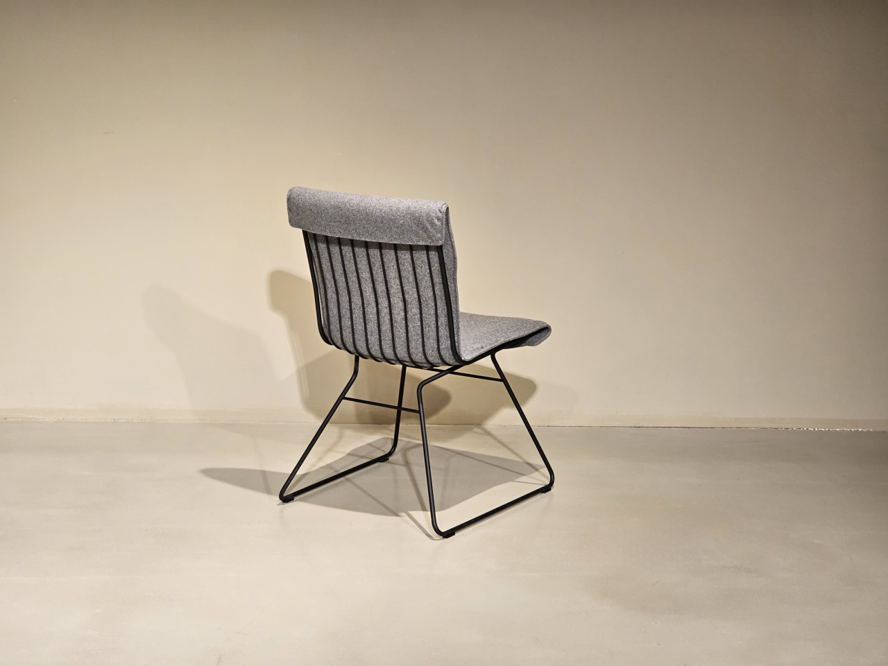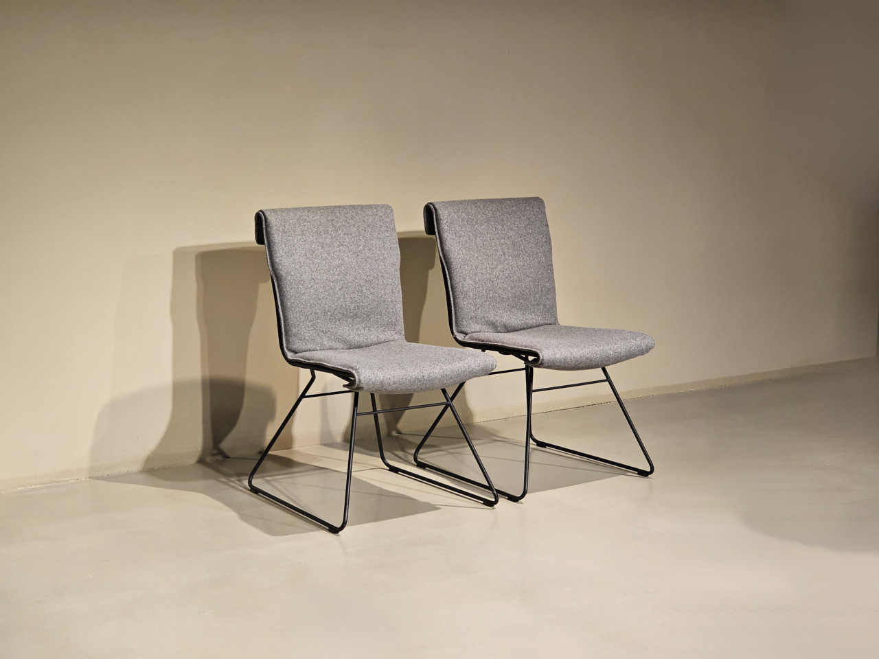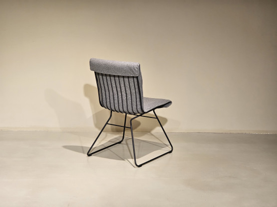 Der De Sede DS-515 Snug 101 Stuhl, entworfen von Greutmann Bolzern, überzeugt durch ein minimalistisches Design und exzellenten Sitzkomfort. Das filigrane Kufengestell in Schwarz verleiht dem Stuhl eine leichte und elegante Erscheinung, während die Sitzschale aus hochwertigem grauem Stoff für eine angenehme Haptik und dezente Ästhetik sorgt.