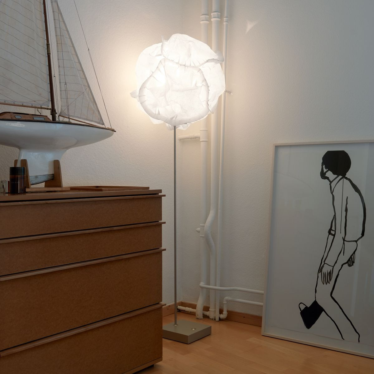 Die formschöne Standleuchte strahlt weiches Licht diffuses ab, so das sich kaum Schatten oder Kontraste bilden