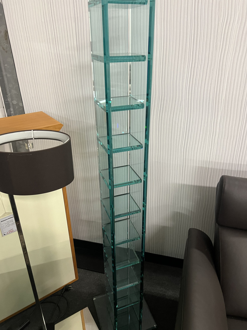Dieser ist aus einem Floatglas mit Schliff gefertigt und hat einen Höhe von 162cm.