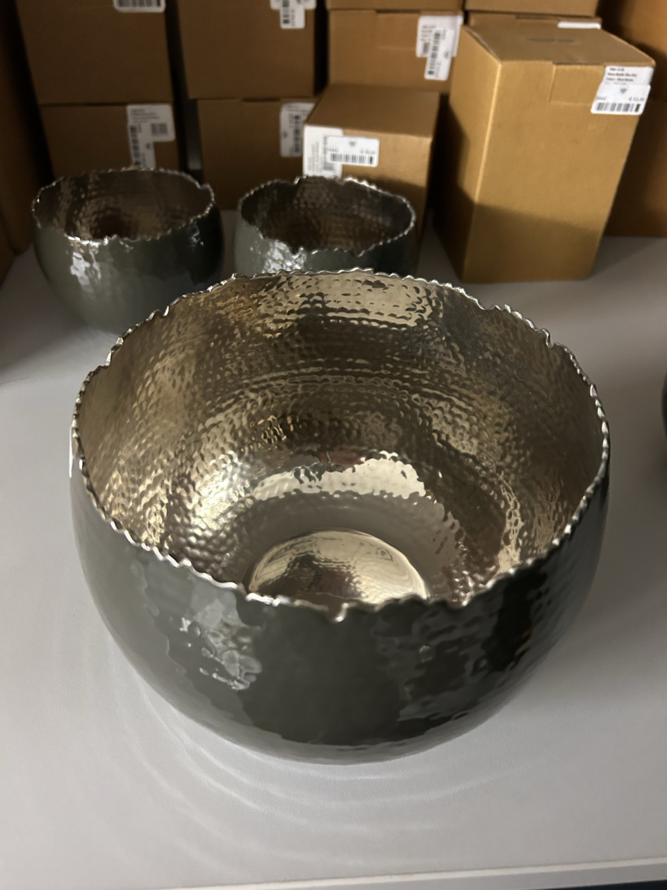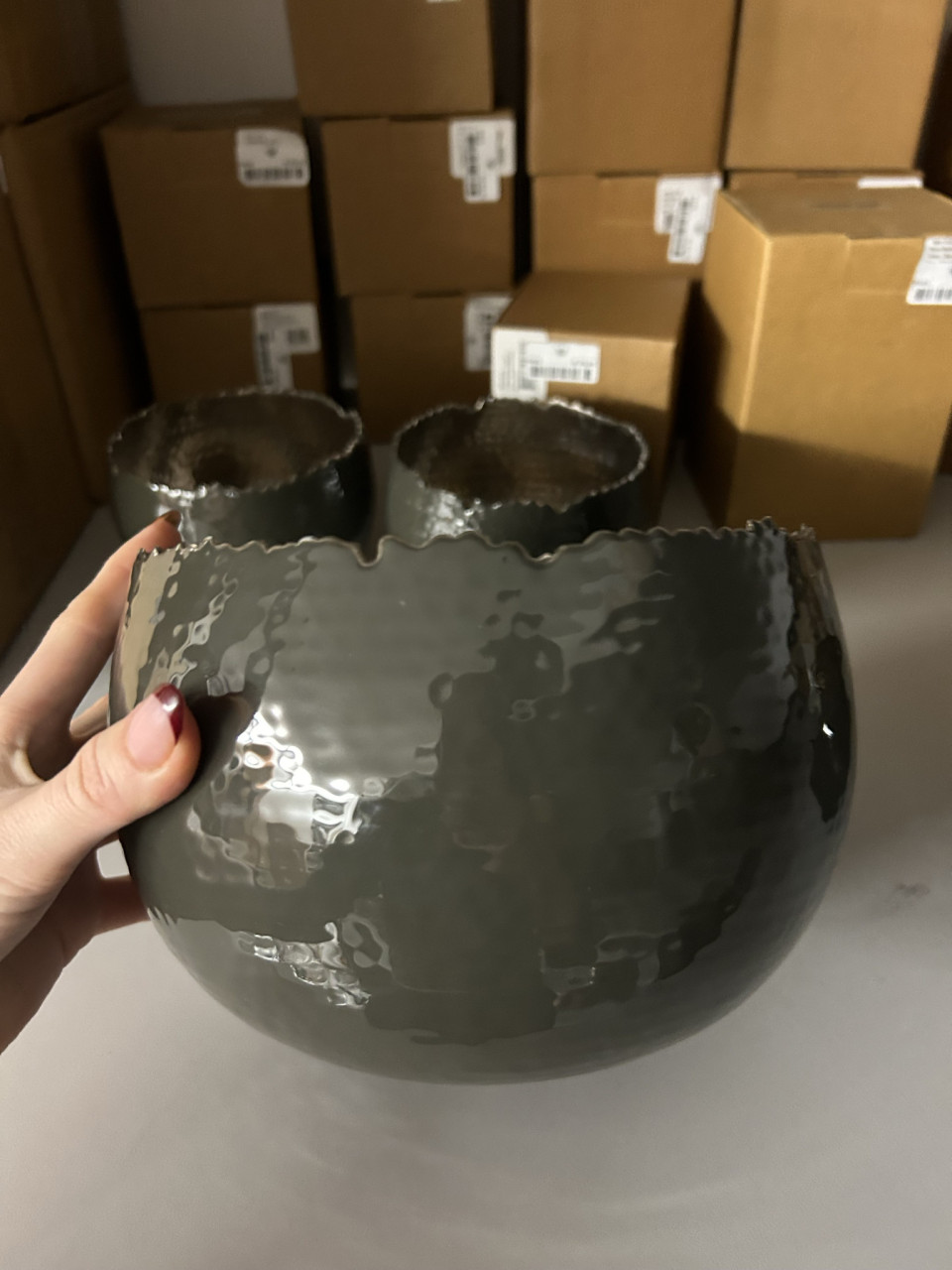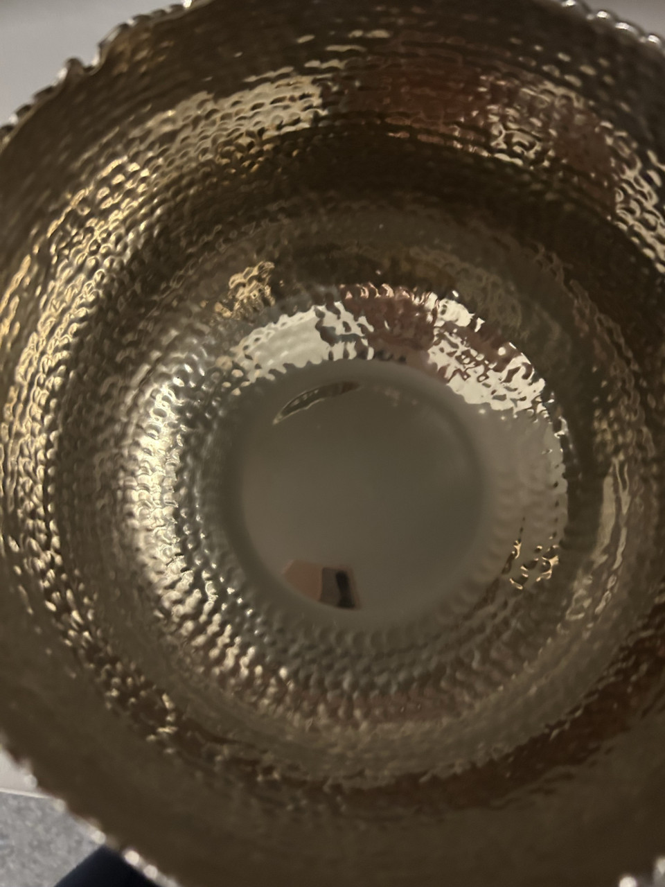 außen Emaille grau, innen vernickelt, Rand gezackt