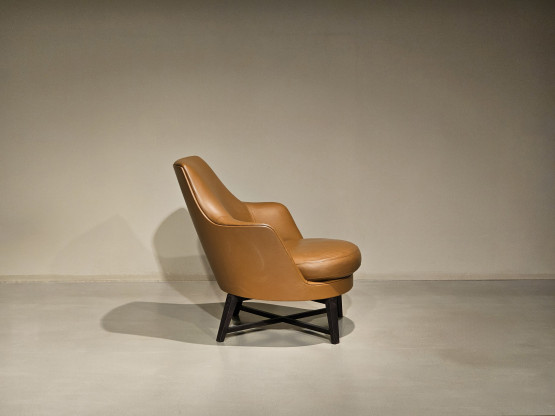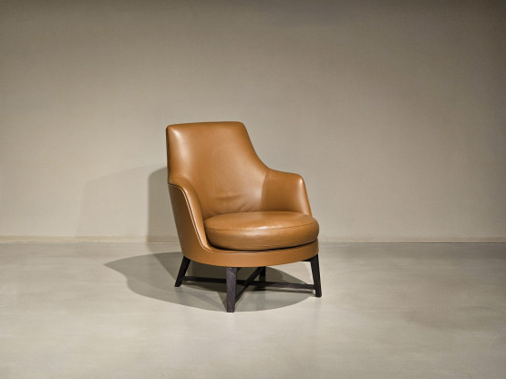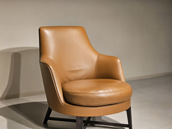 Die ergonomische Form und das weiche Sitzkissen, gepolstert mit Daunen und formfester Einlage, sorgen für optimalen Komfort. Dank seiner harmonischen Proportionen fügt sich der Guscio Sessel ideal in elegante Wohnräume, luxuriöse Lounges oder repräsentative Büros ein.