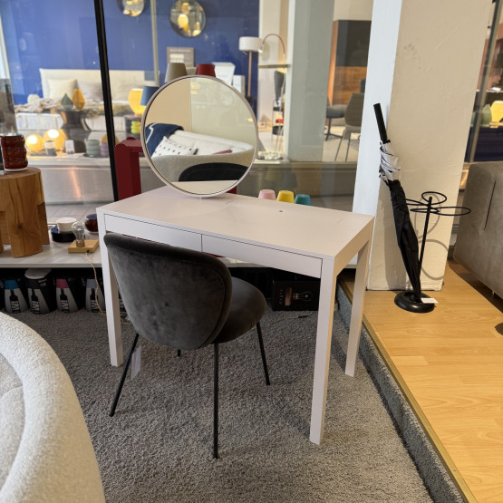 Der Schminktisch SPHERE vereint modernes, minimalistisches Design mit Funktionalität. Das Modell kommt mit einem dreh- und schwenkbaren Spiegel. Praktisches Details wie ein schmales Fach mit Abdeckung und zwei flachen Schubkästen bieten vielseitige Nutzungsmöglichkeiten - auch als Sekretär.