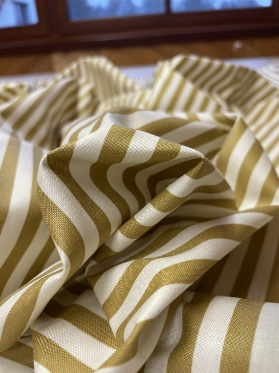 Der Stoff ist 150 cm breit, ist mit 30 Grad waschbar und P chemisch zu reinigen. Der Stoff ist neu.