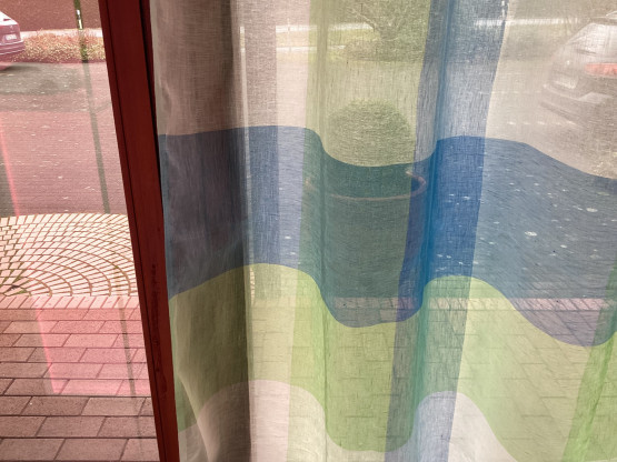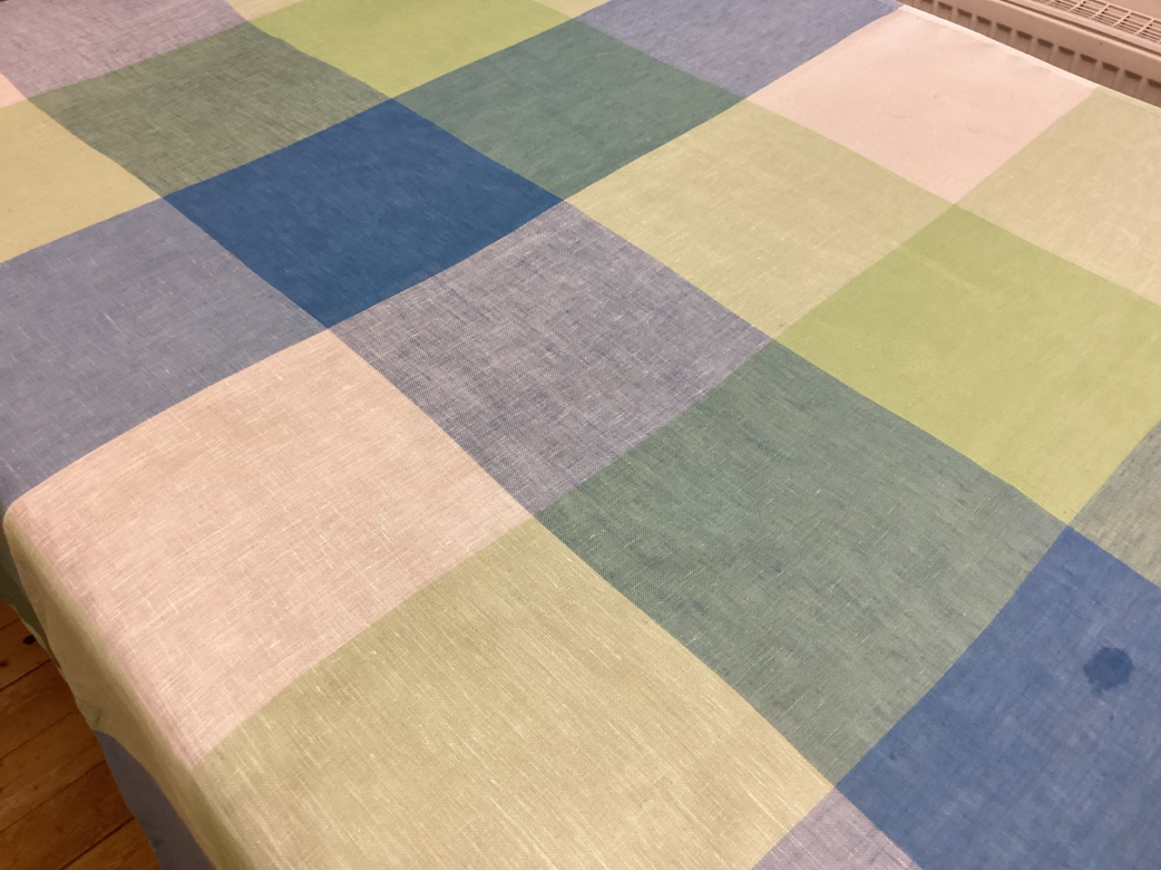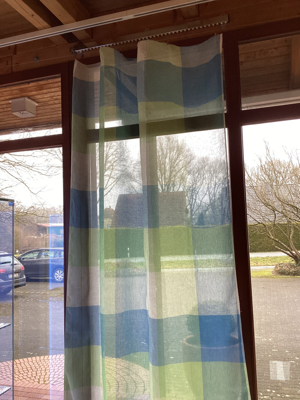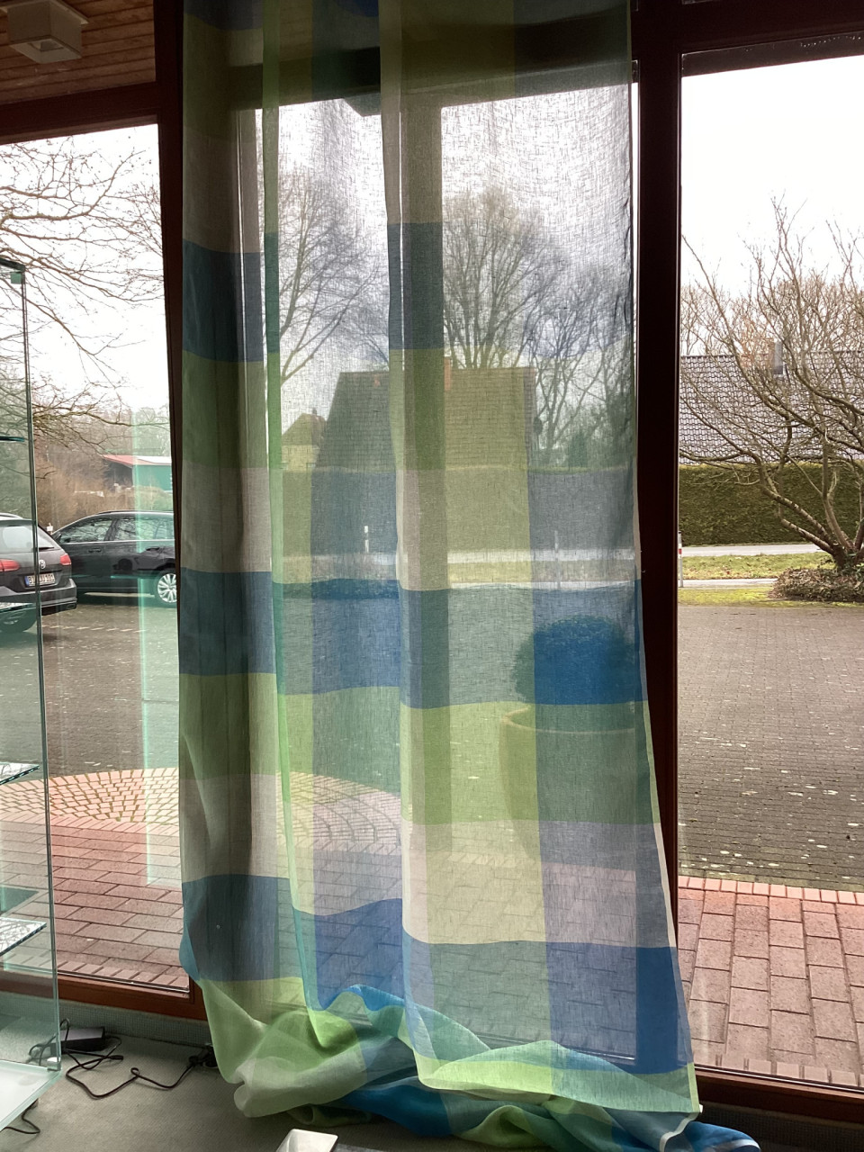 ….ein herrlicher transluzenter Leinen-Vorhangstoff blaugrün kariert von Nya Nordiska.