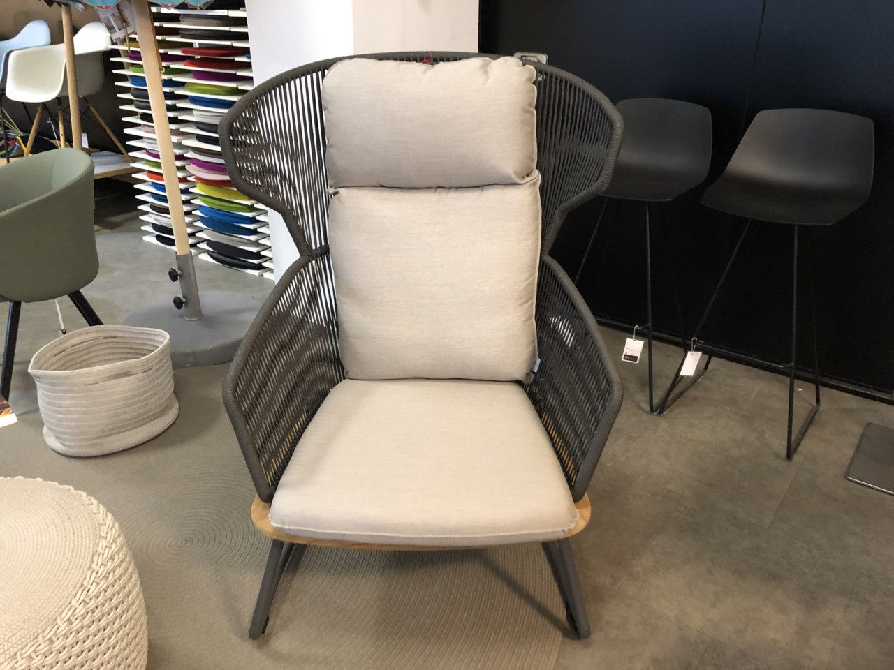 Rückenlehne Korbgeflecht dunkelgrau meliert.