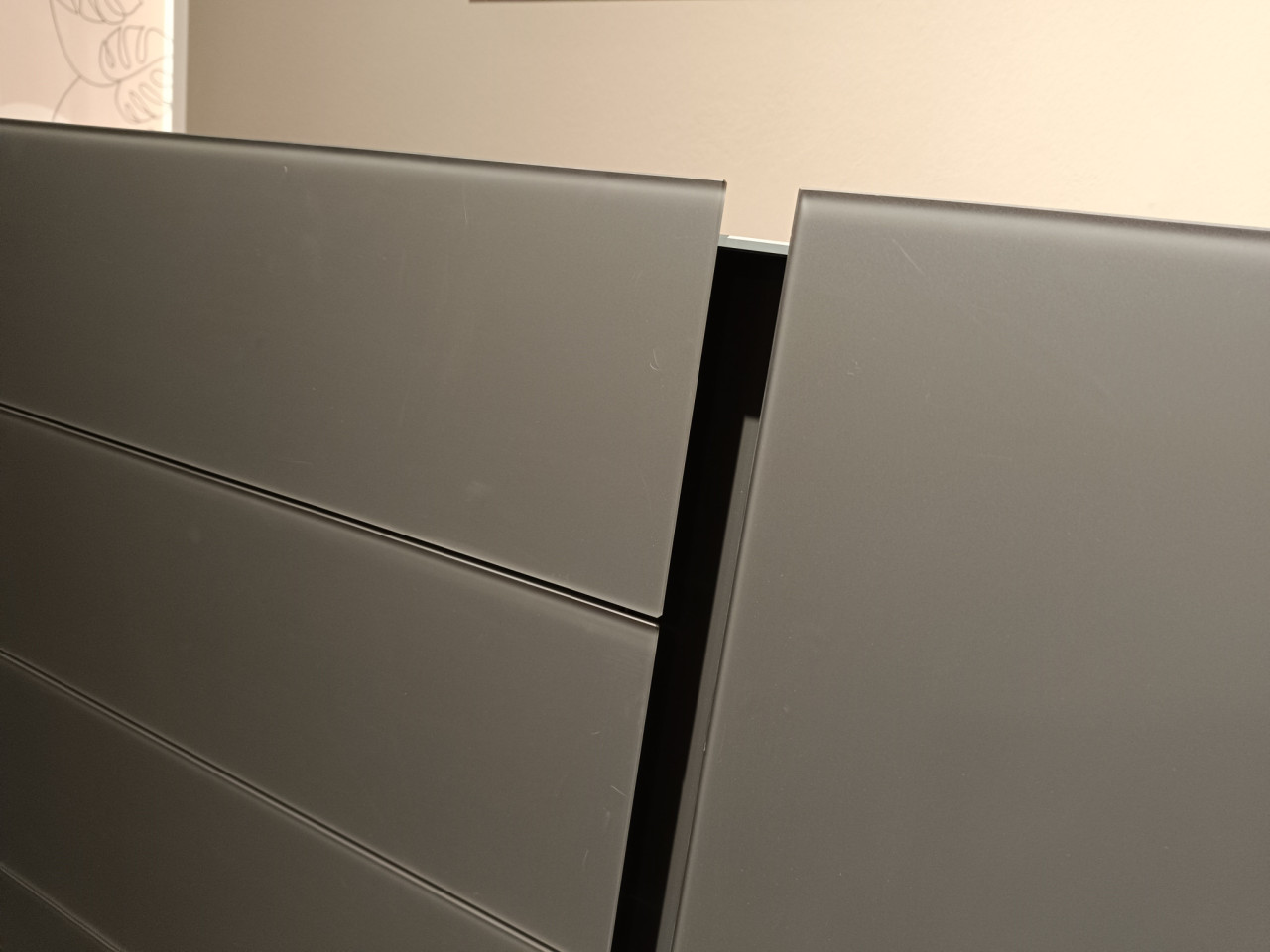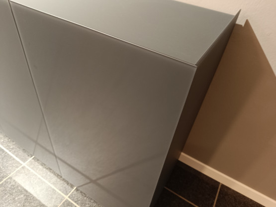 Korpus Lack anthrazit M21, Optiwhite Glas matt anthrazit.