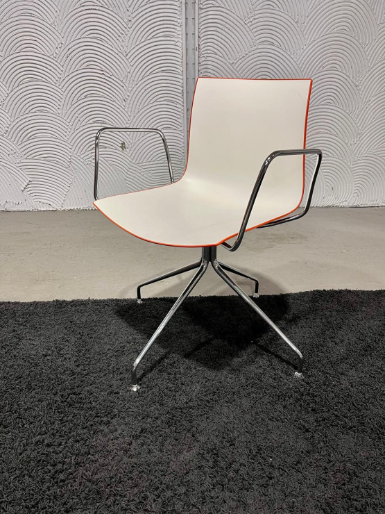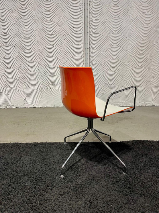 Arper Catifa 46 zweifarbig Drehstuhl Stuhl Chrom, weiß / orange