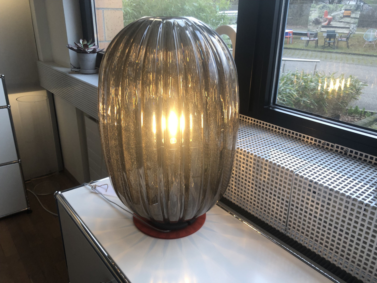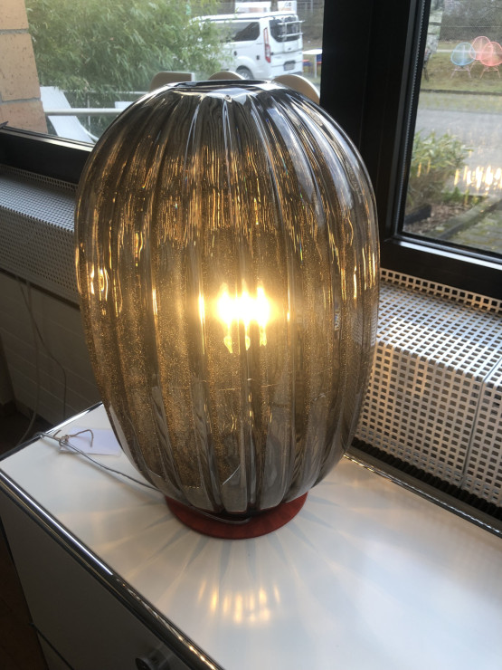 . Gefertigt aus Polykarbonat, wird die ovale Leuchte im Rotationsverfahren hergestellt. Durch diese Verfahrenstechnik entstehen kleine Lufteinschlüsse im Kunststoff, die sofort an schillernde Glasperlen denken lassen und dazu führen, dass jede Plass Media Tischleuchte mit ihrer individuellen Oberfläche zu einem Unikat wird.