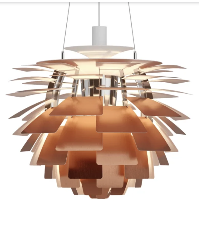 Blätter: Copper, pulverbeschichtet Stahl mit weißer, nasslackierter Innenseite.