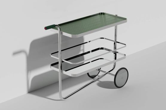 Thonet X Tanqueray: eine Kooperation, die Qualität und ikonisches Design in einer limitierten Sonderedition des Barwagens S 179 vereint und auf diese Weise ein hochwertiges wie funktionales Möbelstück mit Historie schafft. Für die Neuauflage interpretiert der renommierte Produktdesigner Sebastian Herkner Entwürfe von Ludwig Mies van der Rohe aus den 1930er-Jahren und kombiniert diese mit Farben und Materialien der bekannten Tanqueray-Flasche. So besticht das klassisch reduzierte Chromgestell des Originals in der Sonderedition mit Riffelglas in Londongrün, verspiegelten Flächen sowie Detailelementen, wie dem ikonischen Siegelstempel der Marke Tanqueray auf den hochwertigen Ledergriffen. Ob als Hausbar im Wohn- oder Esszimmer, Sideboard im Büro oder mobiler Servierwagen – der vielseitig einsetzbare S 179 fügt sich stilvoll in die unterschiedlichsten Einrichtungen ein und wertet diese mit seinem einzigartigen Design auf.