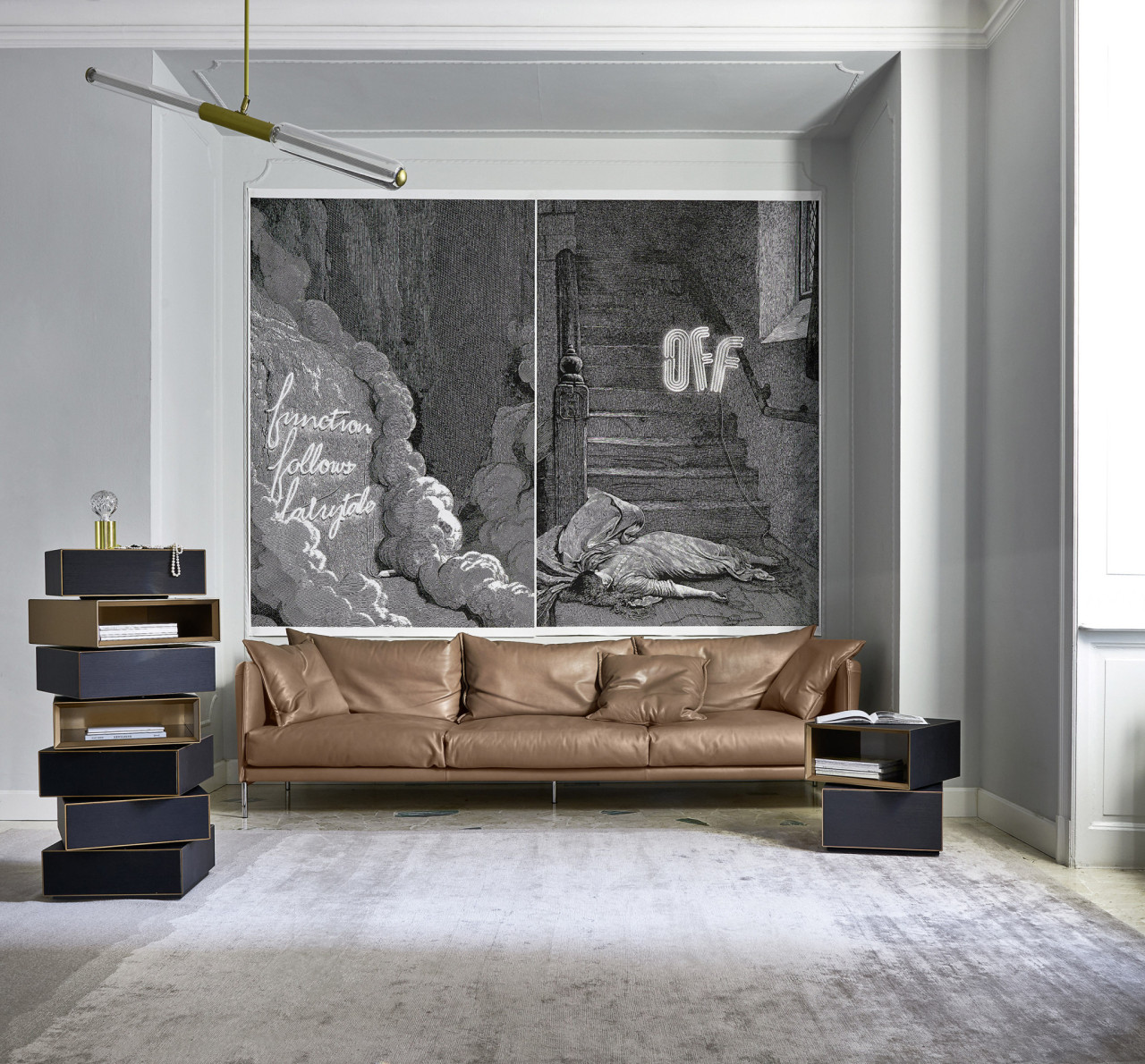 Systemmöbel mit Ideen und Lösungen, die mit großer Einfachheit den Wohn- und Schlafbereich mit einer großen Auswahl an Materialien, Größen und anpassbarem Zubehör abdecken und beeinflussen.