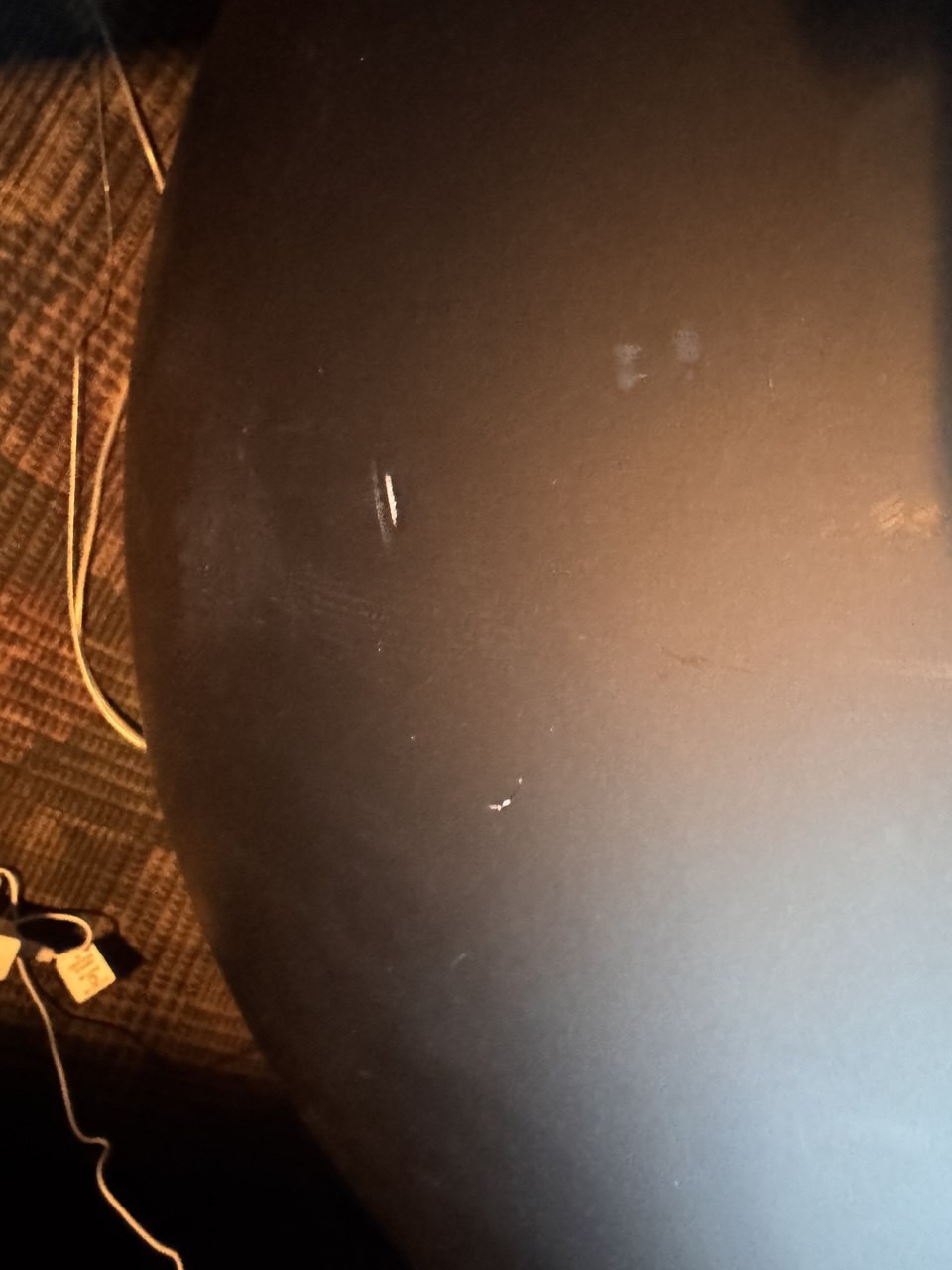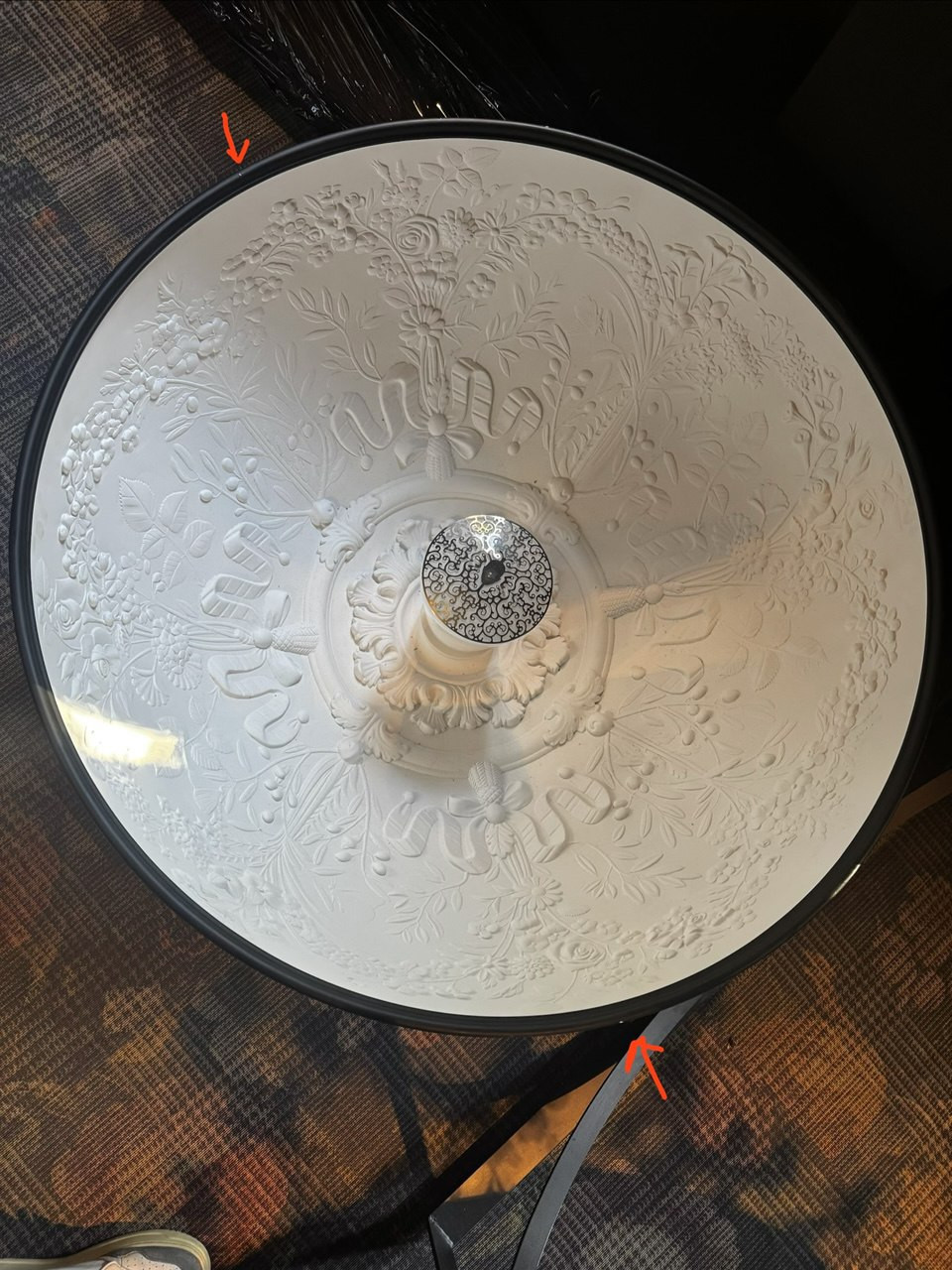 Ausstellungsware mit Kratzern an der schwarzen Aussenfläche. Der Gipsguss, die Innenseite und technisch ist die Lampe 100%.