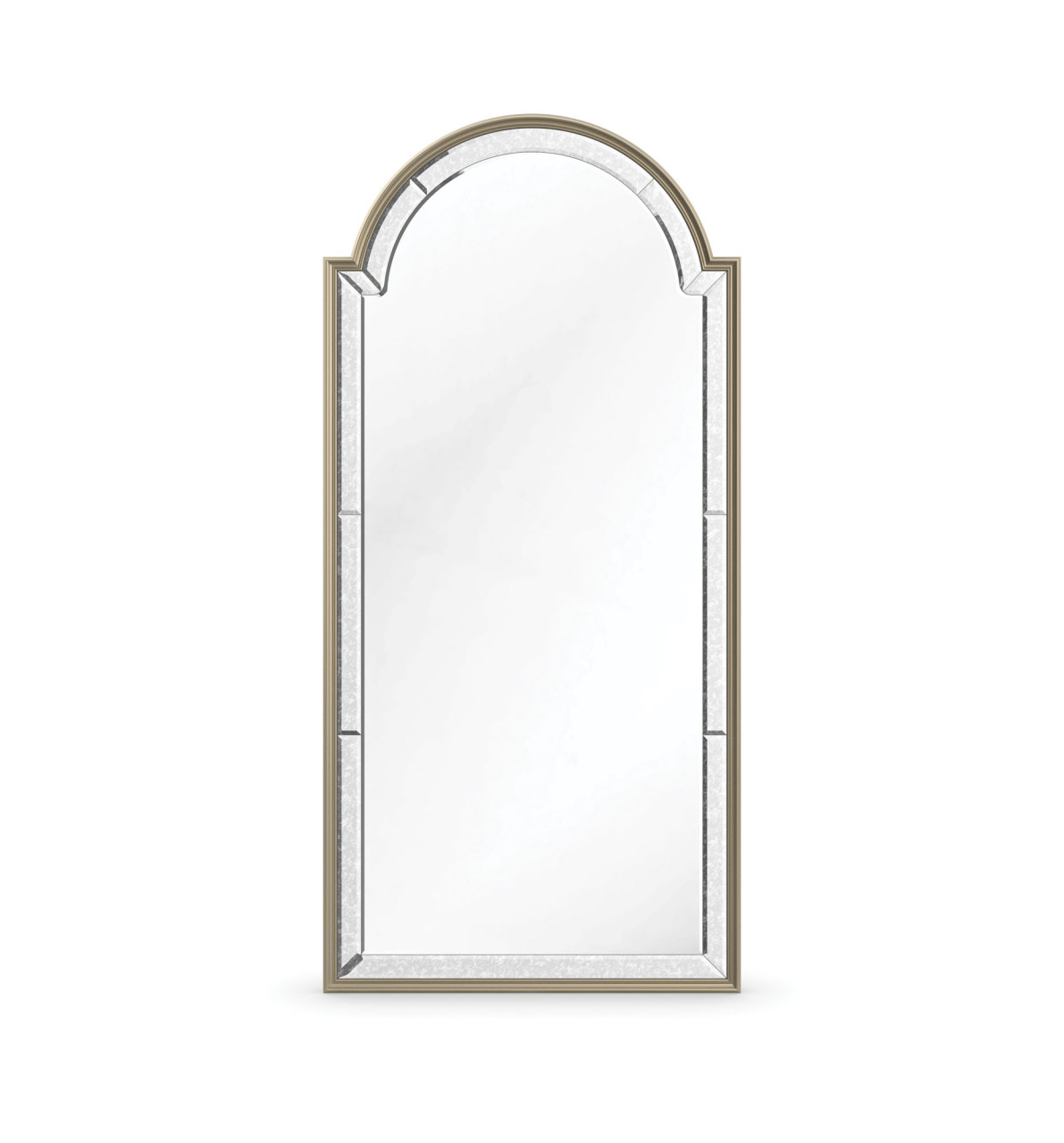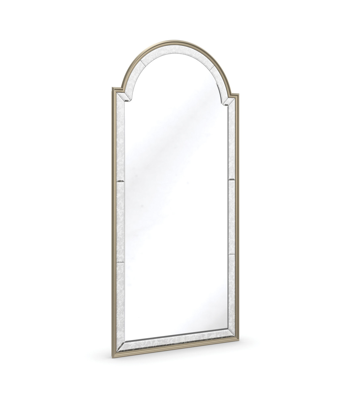 Der Spiegel ist darauf ausgelegt, angelehnt an die Wand zu stehen, was ihn zu einem flexiblen und stilvollen Dekorationsstück für jedes Zimmer macht.