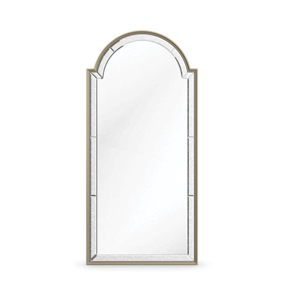 Dieser große Bodenspiegel im arabischen Stil wird aus hochwertigem Birkenholz gefertigt, das für seine Stabilität und elegante Textur bekannt ist. Der Rahmen hat ein Silver Shadow Finish, das dem Spiegel eine raffinierte und edle Optik verleiht. Der antike Spiegelrand rundet das Design ab und verstärkt den Vintage-Charakter des Spiegels. Der klare Spiegel im Zentrum sorgt für eine klare, reflektierende Oberfläche, die den Raum optisch vergrößert.
