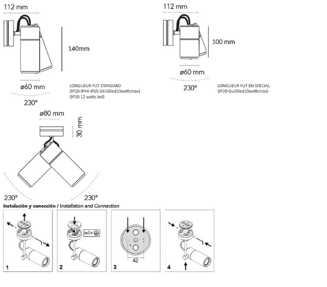 2x10W GU10 LED Flushmount champagner 2 Körper je 230° schwenkbar inkl. LM