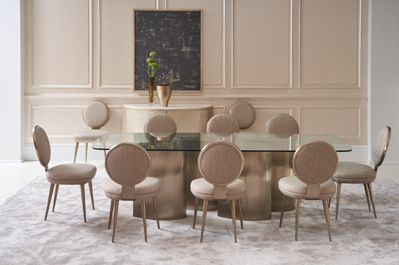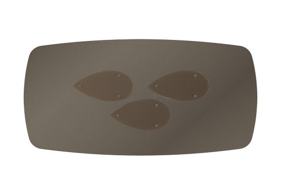 Für größere Gesellschaften ist der Tisch auch mit einer vierpfostigen Basis erhältlich, passend zu unserer rechteckigen Glasplatte in Rauchbronze, die ca. 279 cm lang ist.