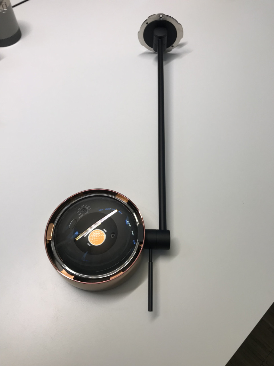 Aufbaudose, Body LED, Länge 40cm, Farbe matt schwarz, Ausrichtung links, Head Sento E, Farbe rose´gold, Bestückung: oben satiniertes Glas, unten Linse,