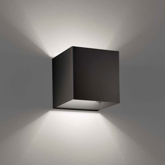 Die Lodes Laser 10×10 LED-Wandleuchte verbindet zeitgenössische Eleganz mit technischer Raffinesse. Dieses Modell zeichnet sich durch eine kubische Form aus lackiertem Stahl aus. Das Design ist bewusst minimalistisch gehalten, um den Fokus auf die Funktion des Lichts zu legen.