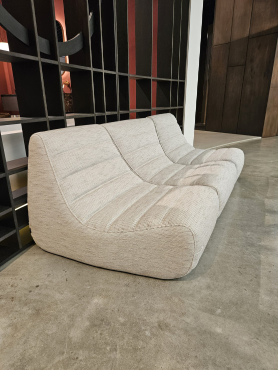 eines Diabolo-Sessels mit seinen konkaven Seitenlinien und des Sessels, der konvexe Seiten hat, lassen ein bequemes Sofa entstehen. Der 3-Sitzer besteht aus