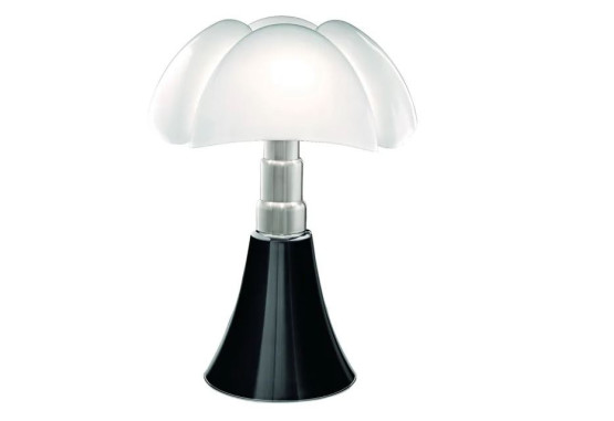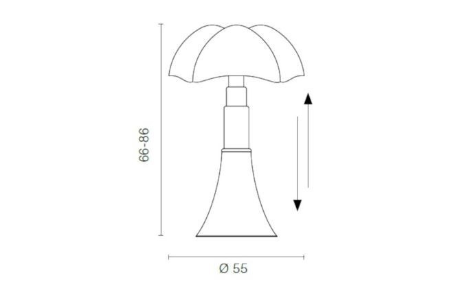 Die von Martinelli Luce herausgegebene Pipistrello vereint Ästhetik und technische Raffinesse. Mit ihrem ausziehbaren Fuß aus Rostfreier Stahl lässt sich ihre Höhe zwischen 66 und 86 cm verstellen, wodurch sie zu einer Lampe wird, die sowohl für den Schreibtisch als auch für das Wohnzimmer geeignet ist. Der Diffusor aus opalweißem Methacrylat sorgt für ein weiches, gleichmäßiges Licht, das eine warme und raffinierte Atmosphäre schafft.