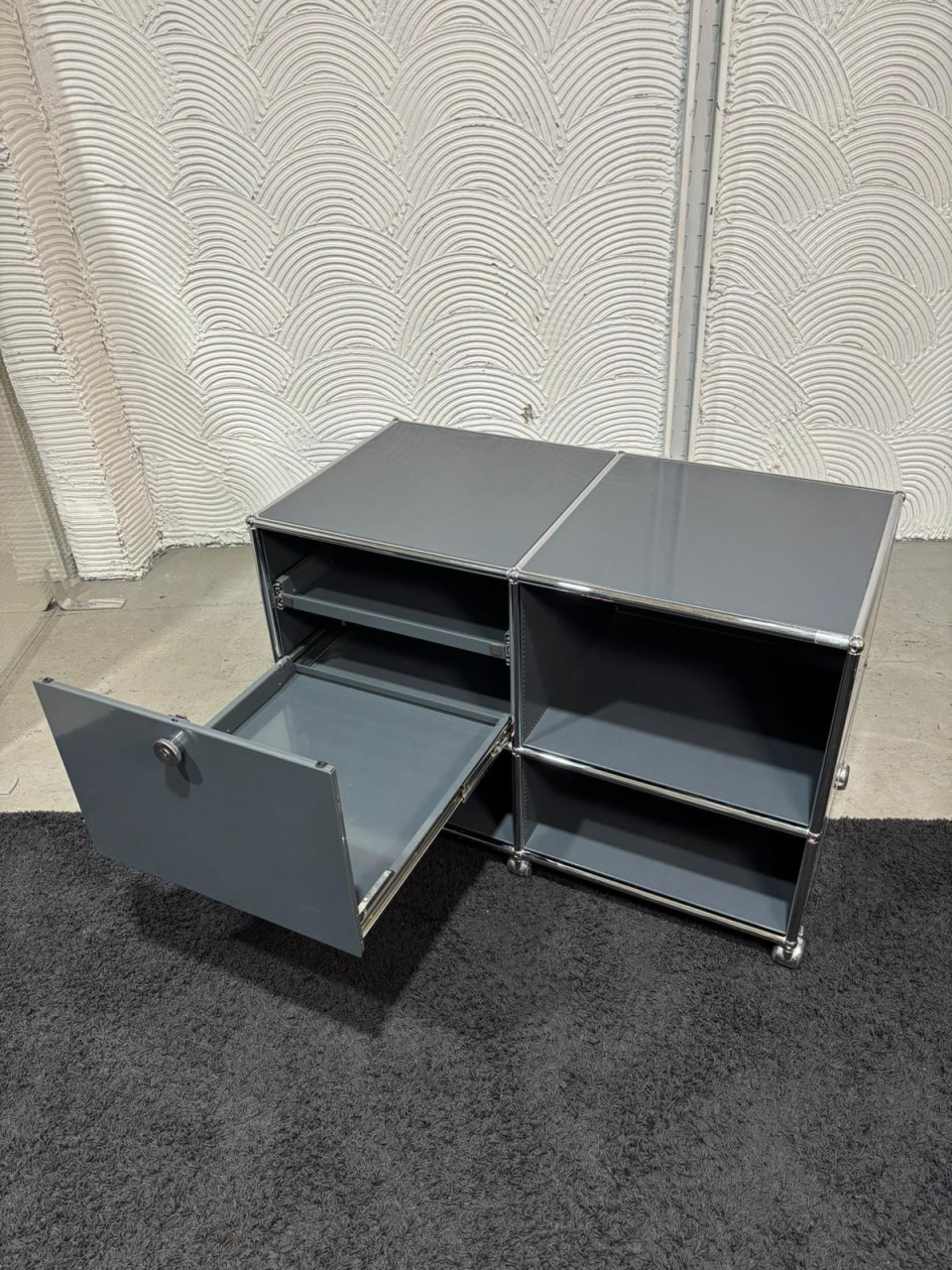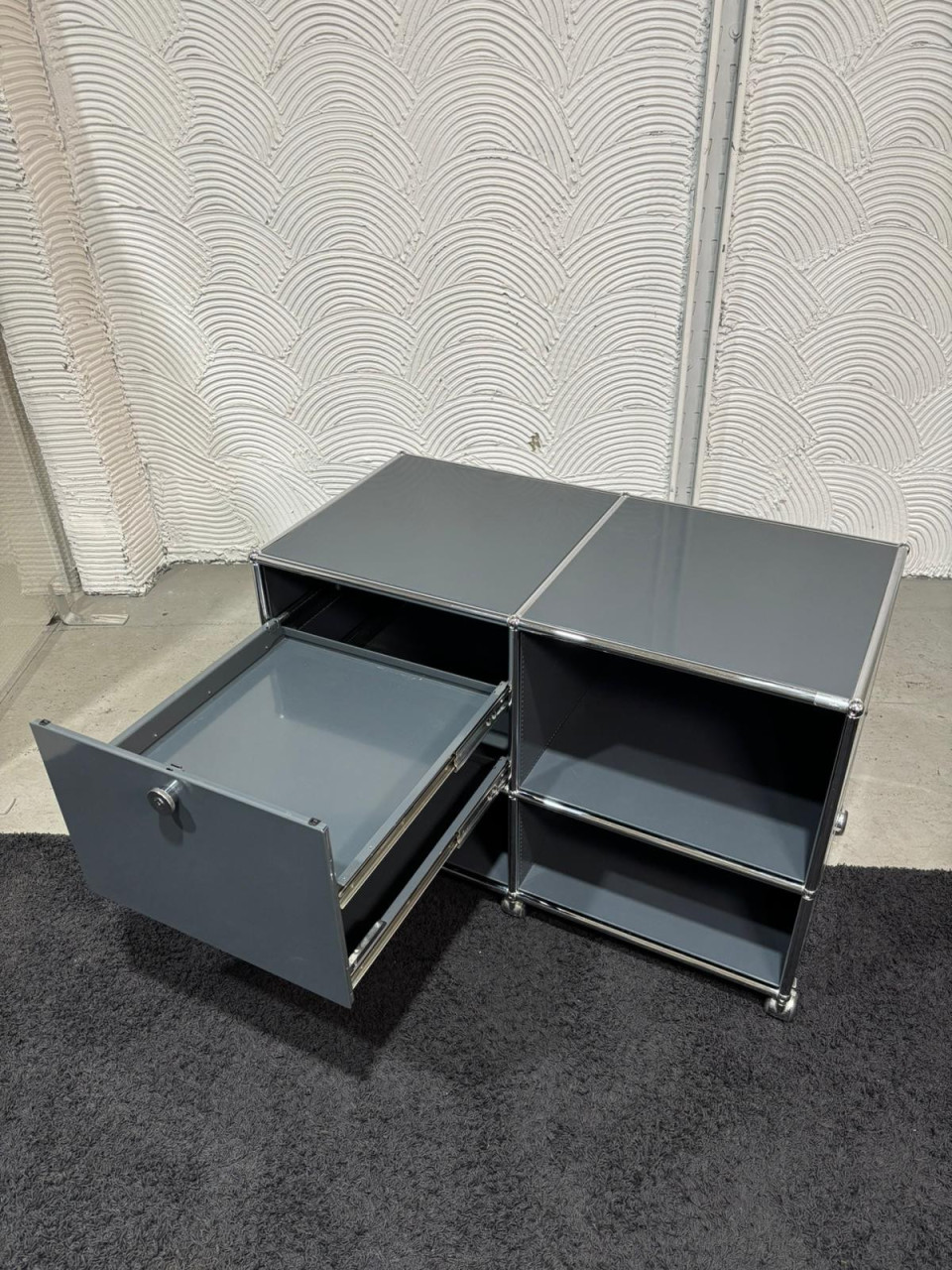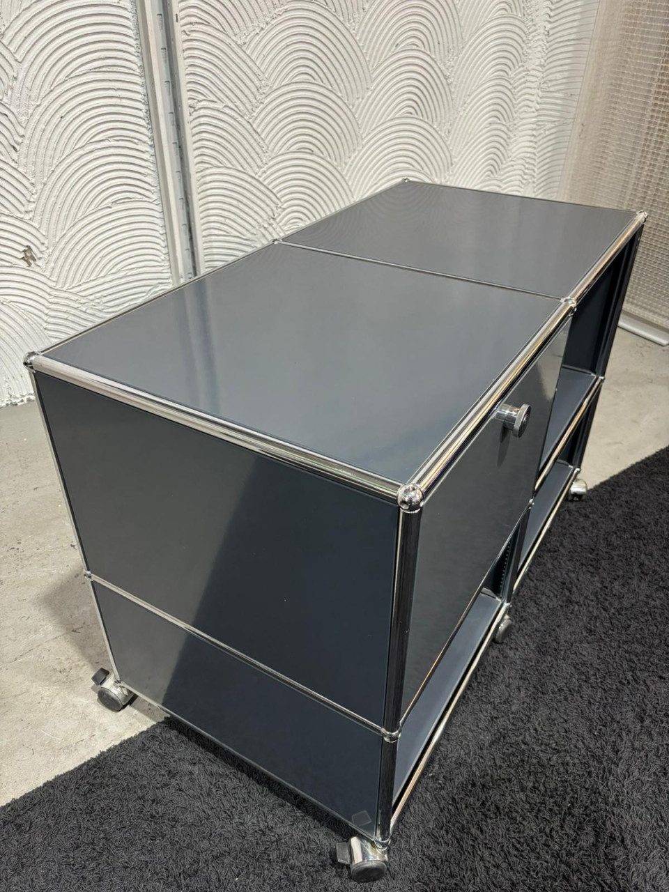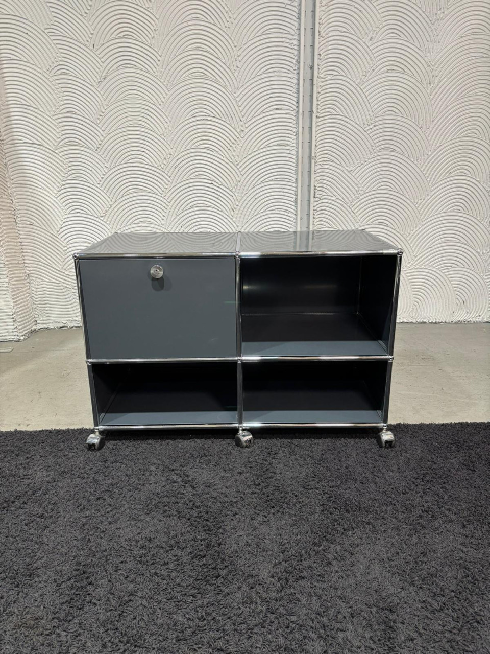 USM Haller Sideboard Anthrazitgrau 2 Schubladen 3 Fächer auf Rollen