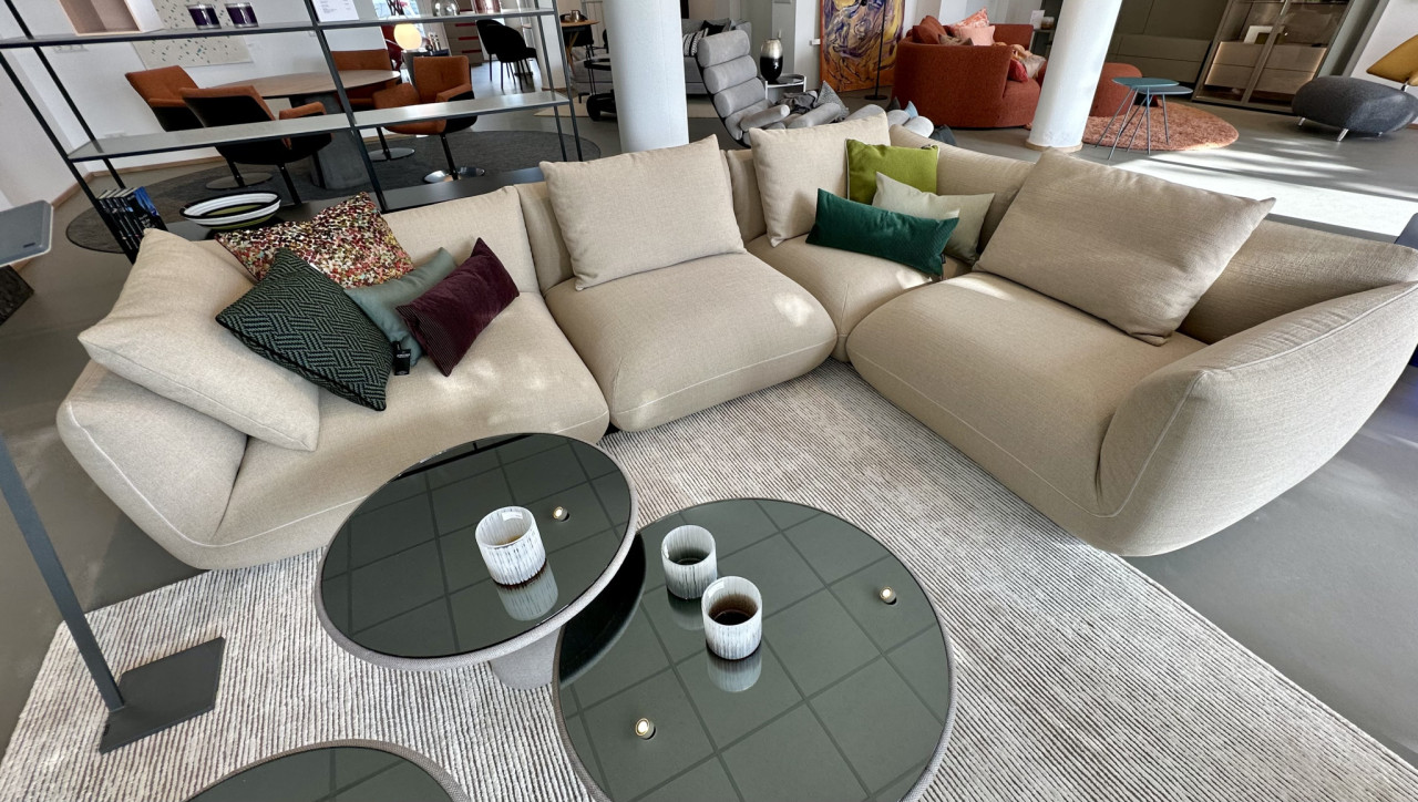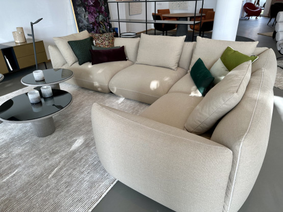 Unser Jalis Ecksofa mit optisch betonten Konturen hat weiche Polsterungen und ein wunderbar anzusehendes Volumen.