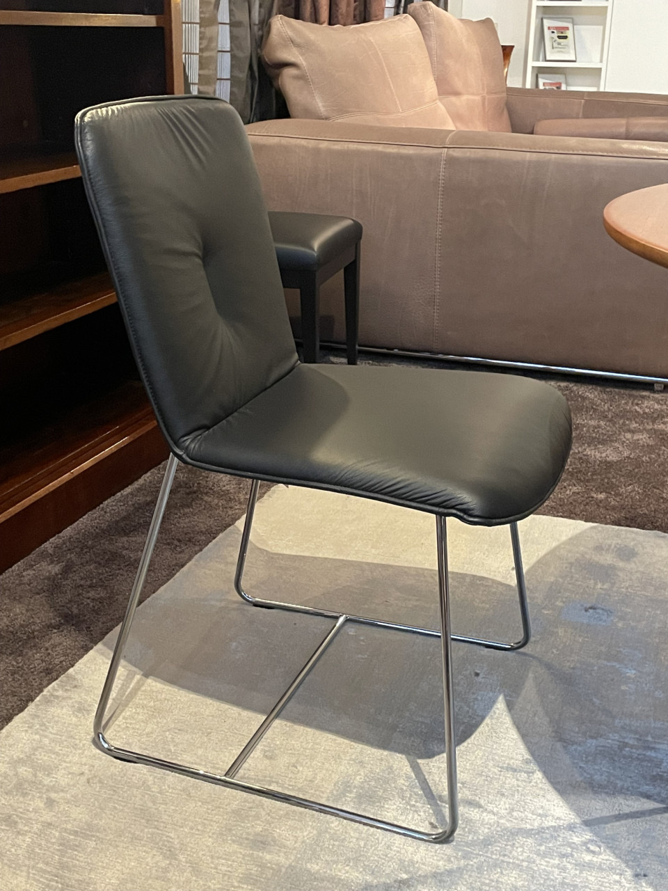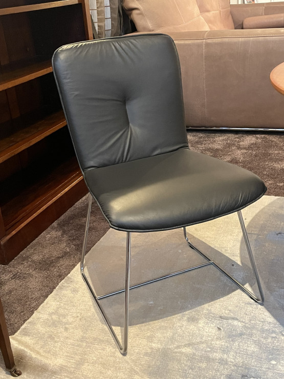 Moderner Esszimmerstuhl mit lässigem Lederbezug.