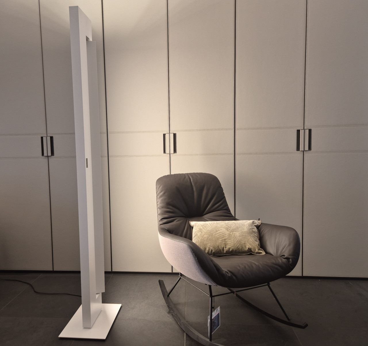 Bei der Leuchte kann direkt am Korpus das Licht nach oben und vom drehbaren Innenteil getrennt geschaltet und gedimmt werden.