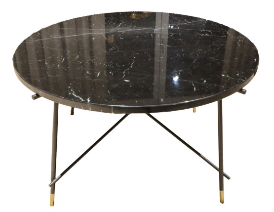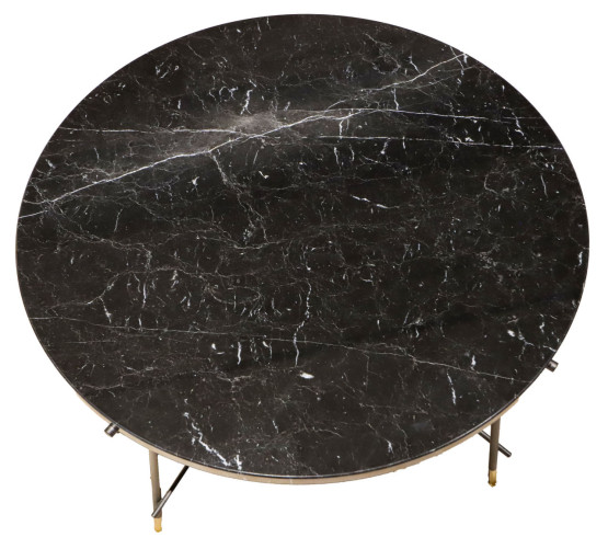 Minimalistisch eleganter Sofatisch mit Marquina Nero Marmorplatte.