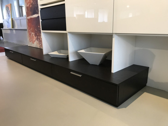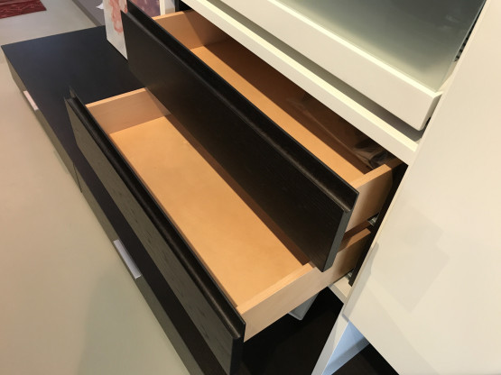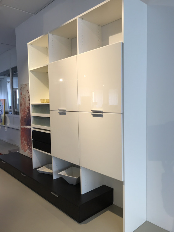 Eiche dunkel / Lack 9010 weiß, Fronten hochglanz