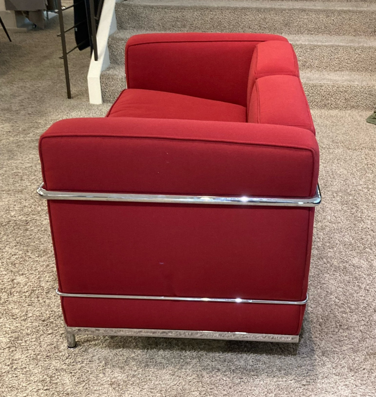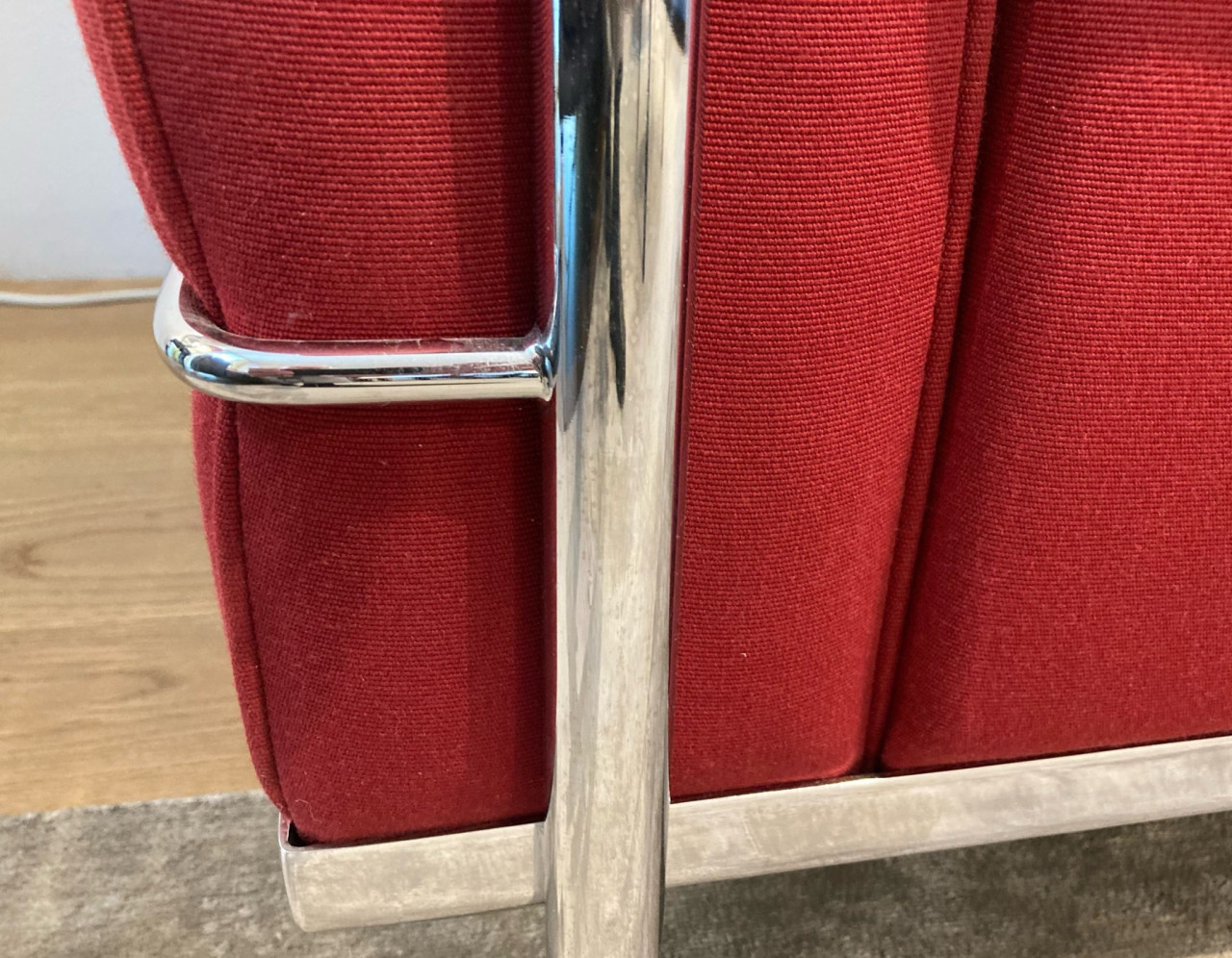 Das zeitlose Modell, das Design-Geschichte geschrieben hat und zu einer Ikone von Weltruhm geworden ist. In der heutigen Zeit perfekt für Wohnungseinrichtungen und Objekteinrichtung aller Art. Bezug Enpingle. Gestell Crom glänzend. Das Sofa wird im Kundenauftrag angeboten und ist neuwertig.