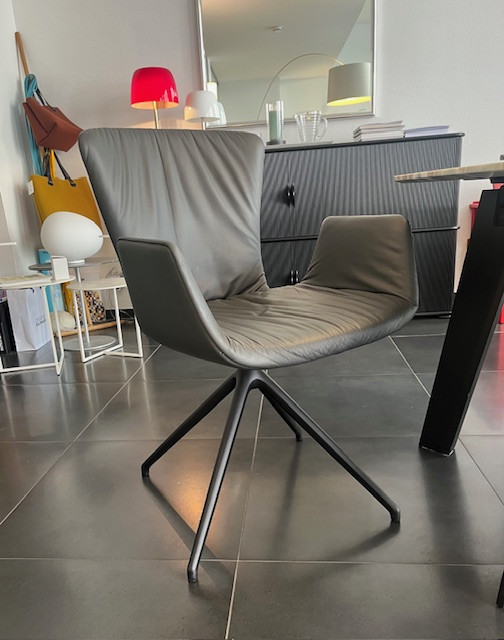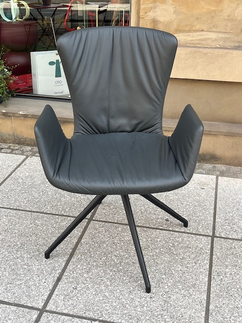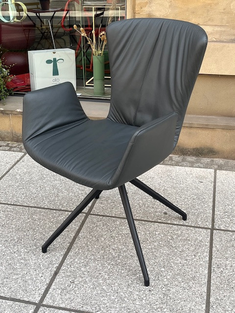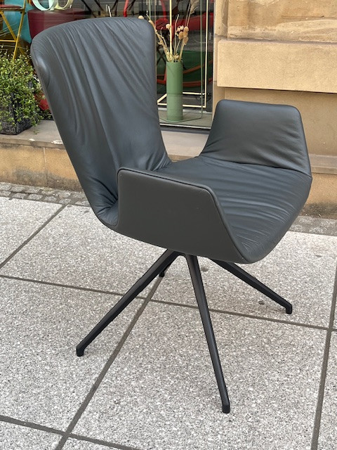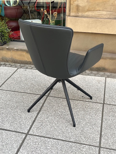 Angeboten wird ein einzelner drehbare Schalenstuhl Dexter, bezogen in anthrazitfarbenem Leder, Nr. 919.