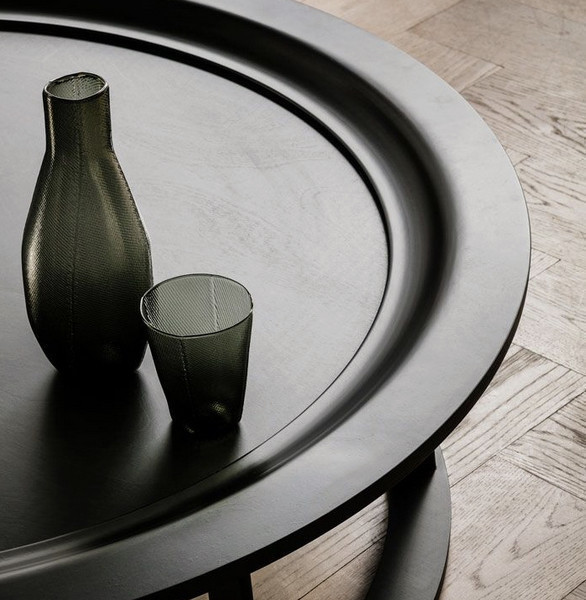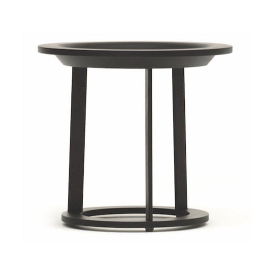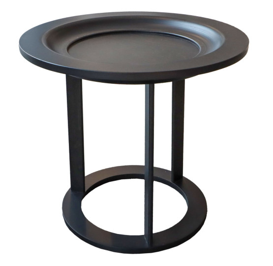 Formvollendeter Beistelltisch aus Birkenschichtholz, anthrazit gebeizt mit Klarlack matt.